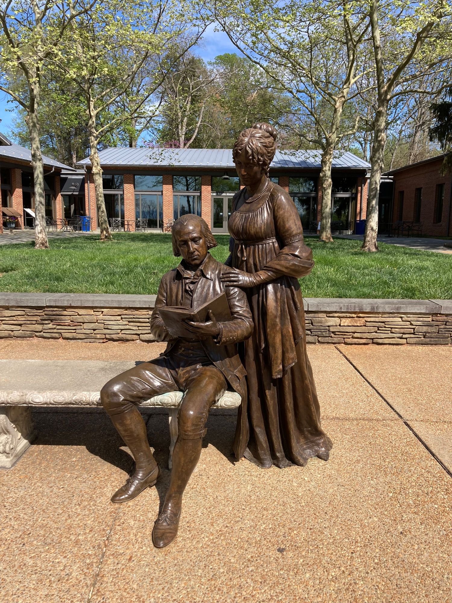 Statue of Madison and Dolley in front of the visitors center