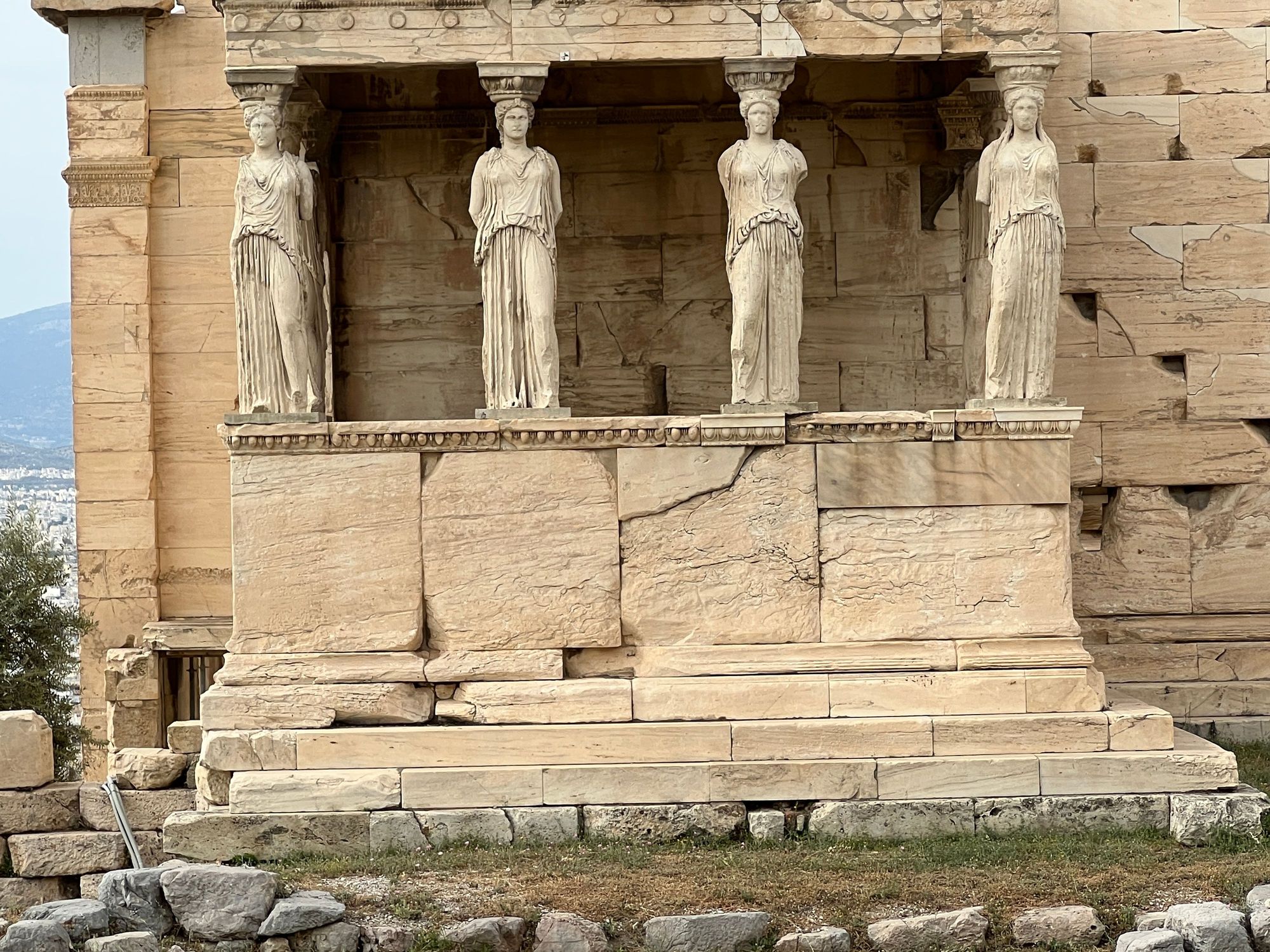 Acropolis- Porch of the Caryatids at the Erechtheion which contains a number of ancient sanctuaries. It was built from 421 BC to 395 BC