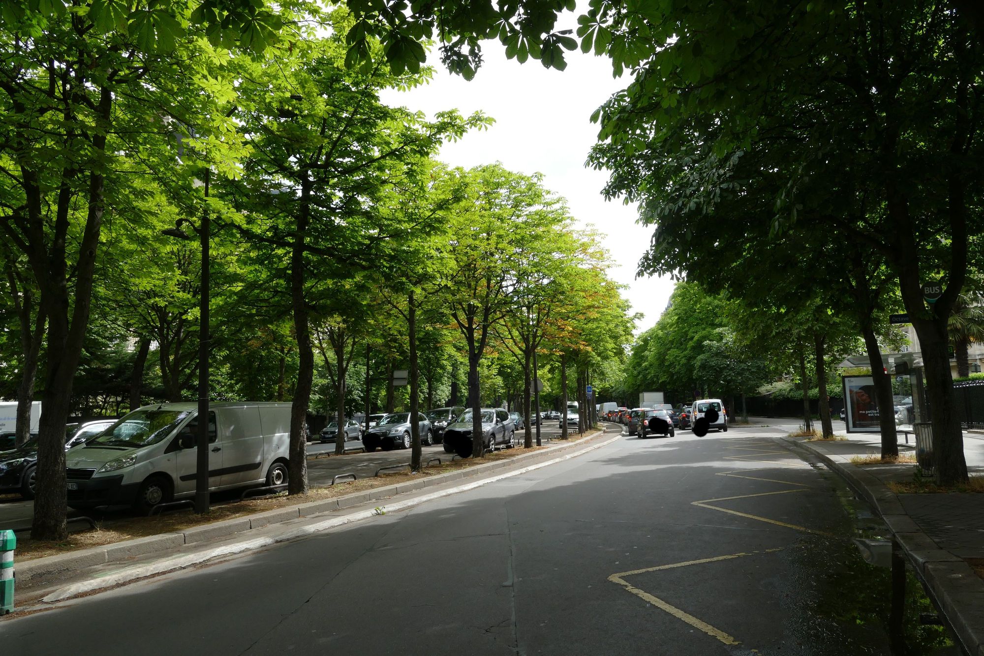 This is the end of Ave Henri Martin, and it used to be basically the end of town. The bus turned around here, and there was almost no traffic. This traffic jam shows how things have changed.