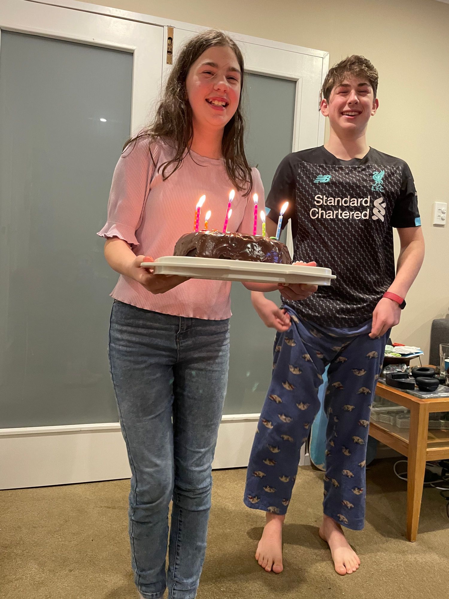 Molly made me a belated birthday cake, Harry iced it.