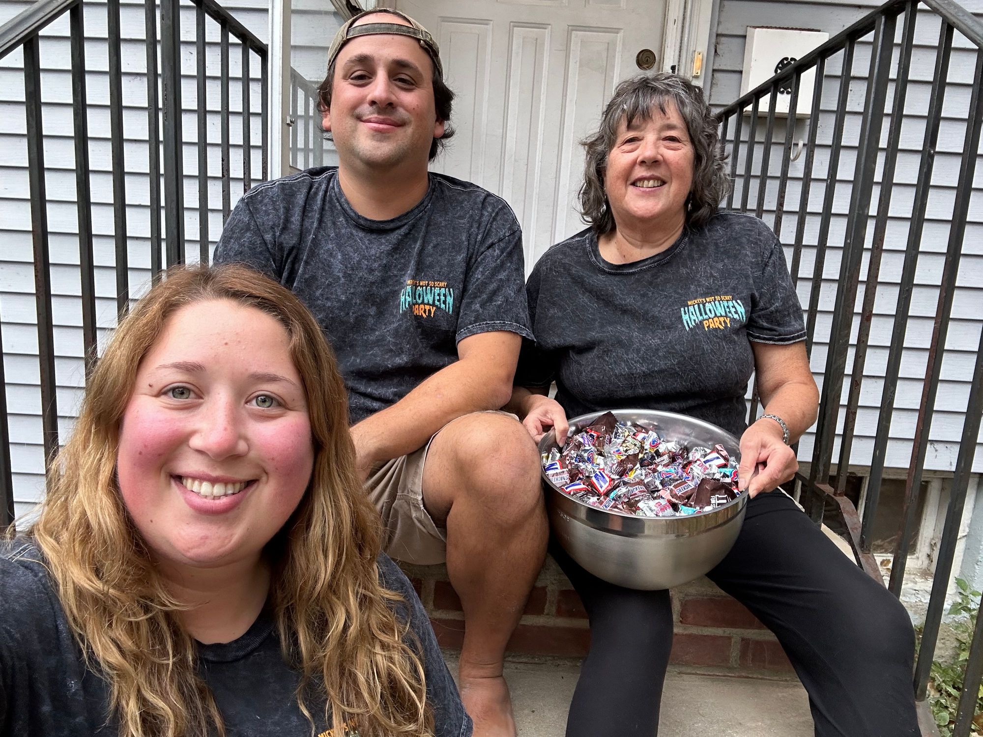 We just wait outside with the candy. It beats constantly answering the doorbell