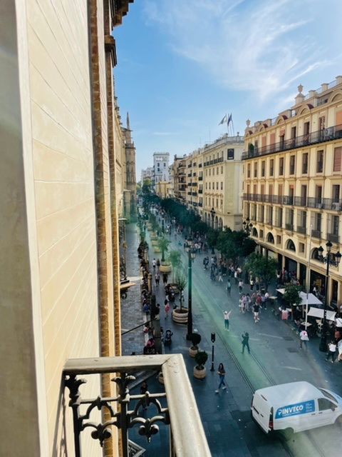 View from the balcony of our apartment. Thankfully, the windows block out a lot of the noise. Fun to people watch!