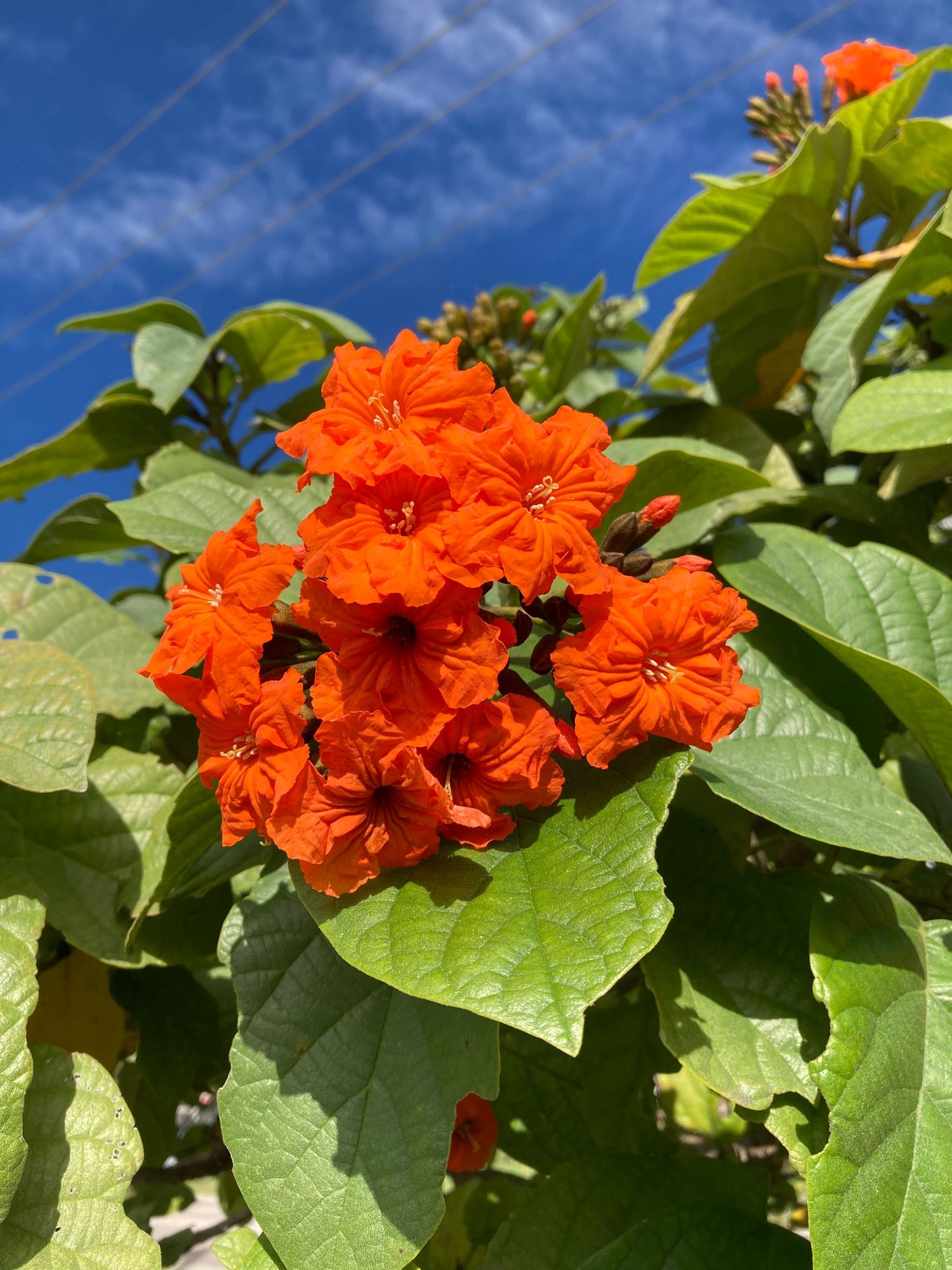 Pretty orange flowers on a tree next to our parking spot at Aldi.