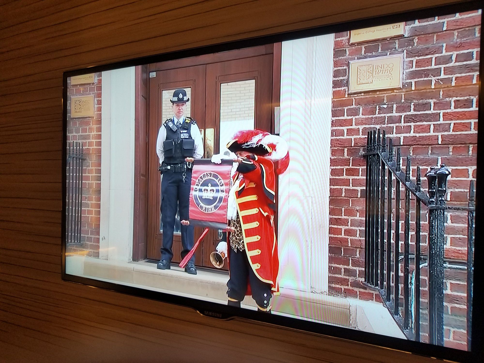 Town crier announcing the baby's birth - on telly