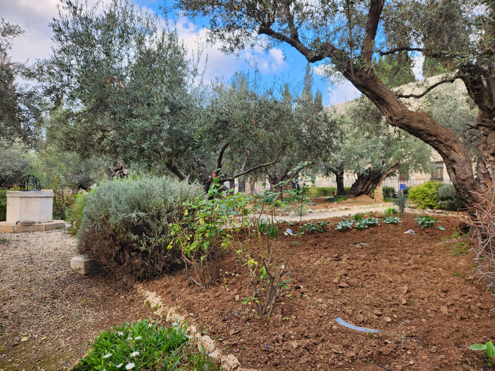 Garden of Gethsemane at the base of the Mount of Olives.
