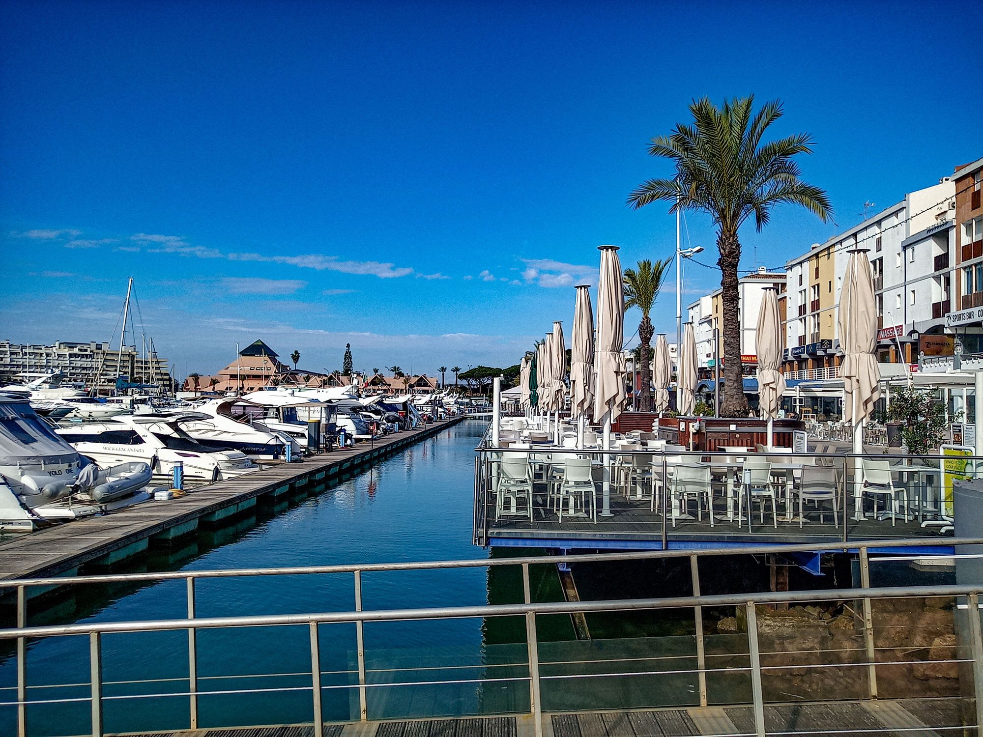 Restaurant patios on the marina