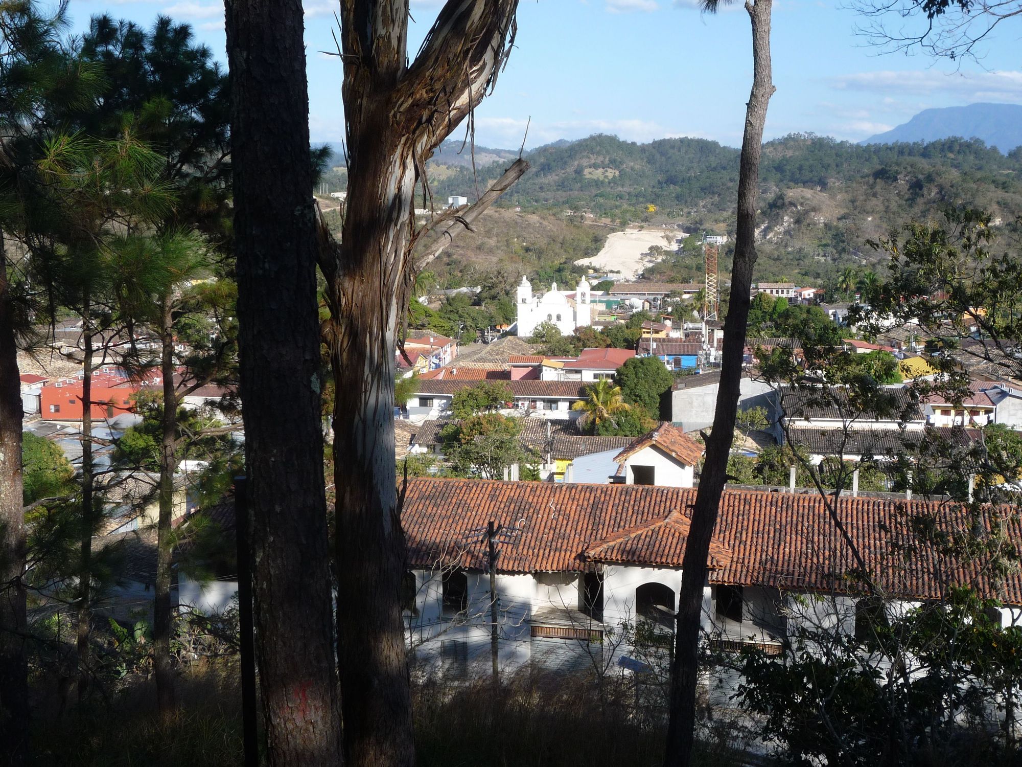 Colonial Gracias, seen from the fort, dominated by San Marcos church, and the mountains beyond.