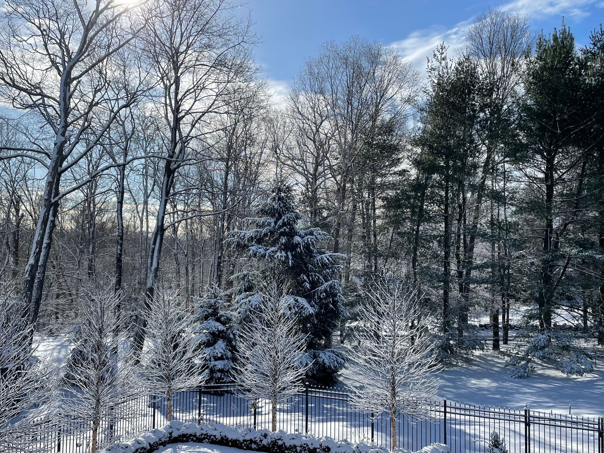 This is the view out my bedroom window. The sun comes up just beyond those trees and I love to have my morning coffee and enjoy this scene.