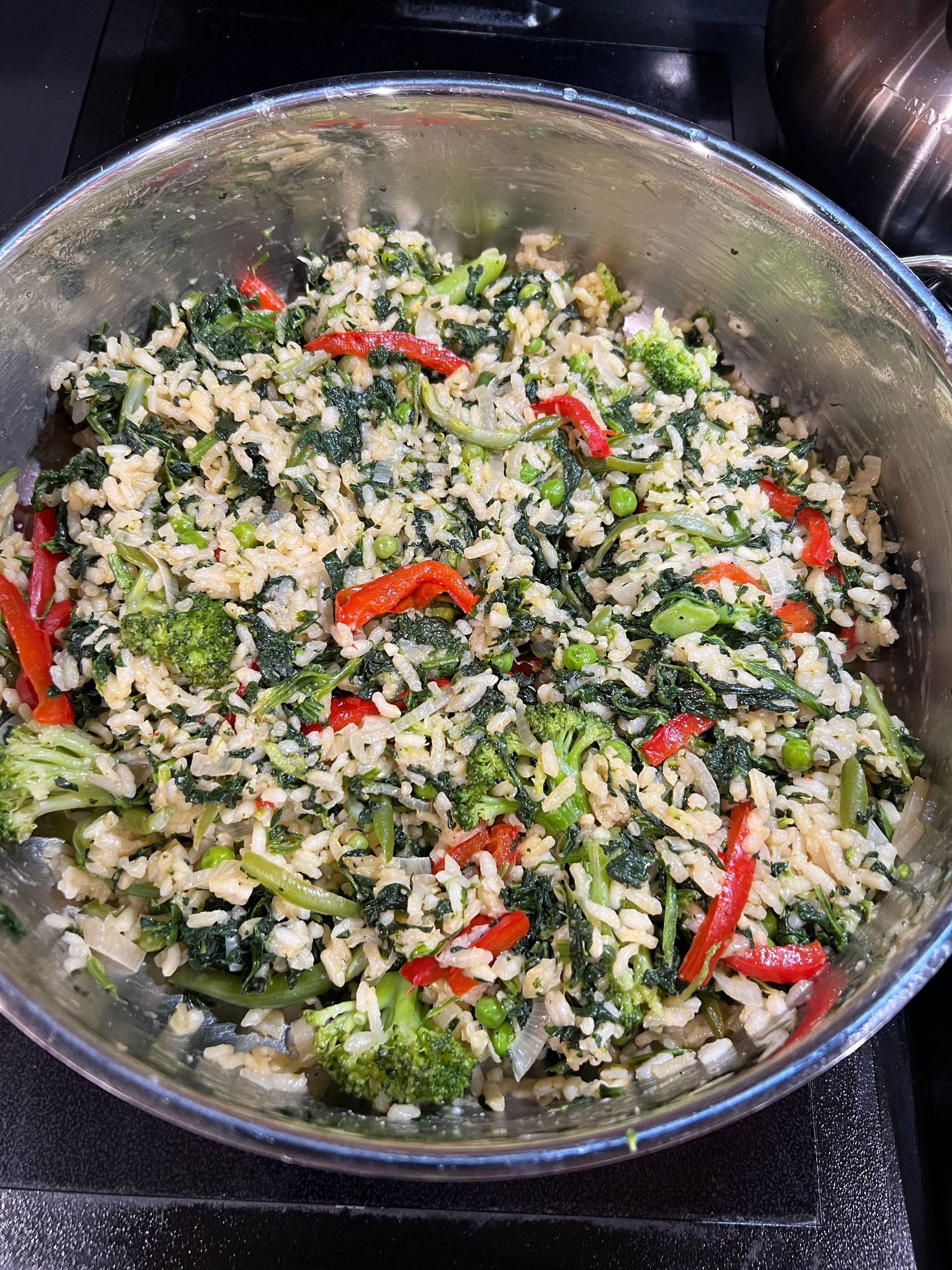A Passover Vegetable Risotto. The recipe said takes a half hour. Not for me, it was more like three, but worth it.