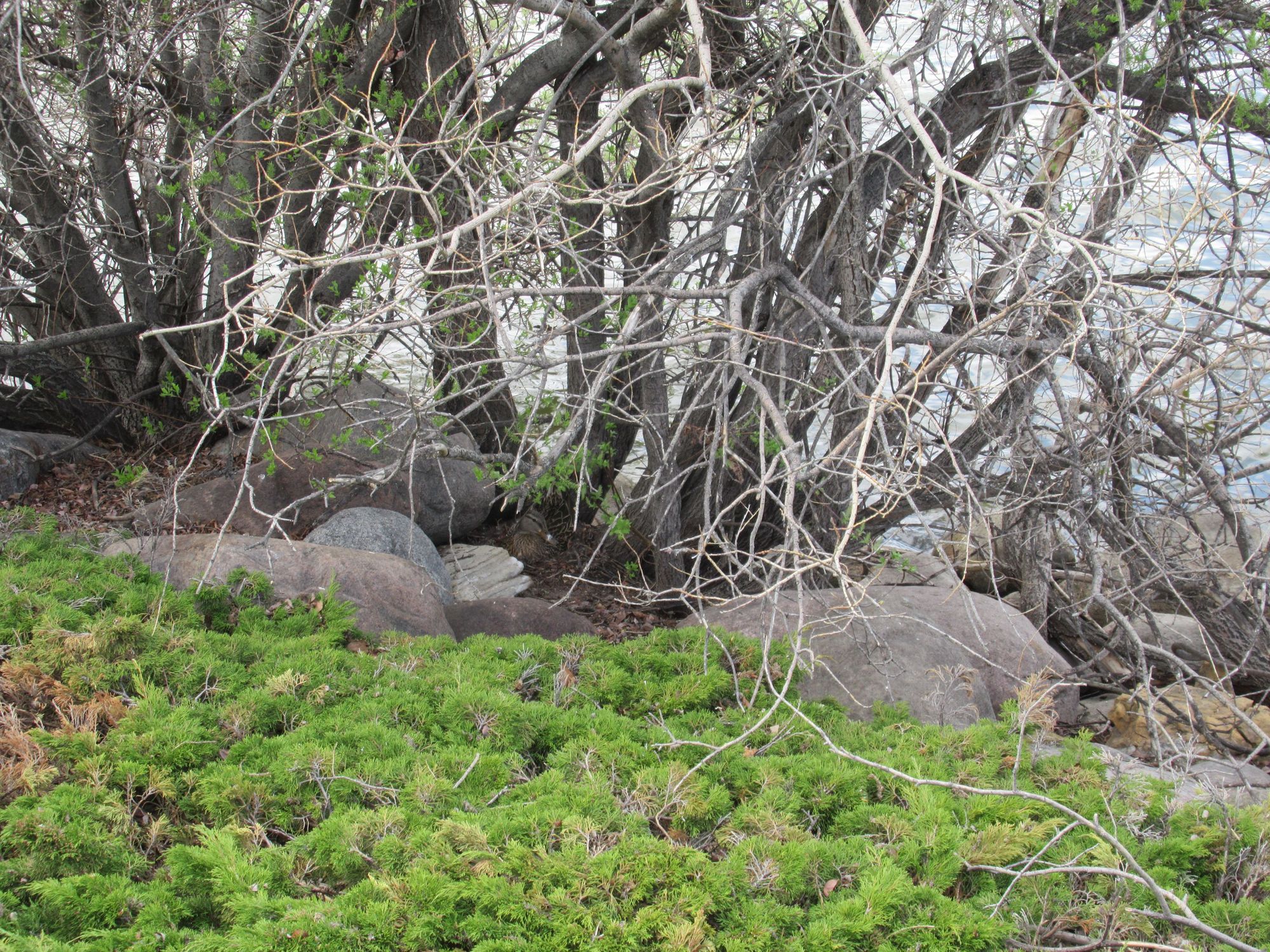 Walk along the lake and spotted this duck next at base of the tree shrubs.