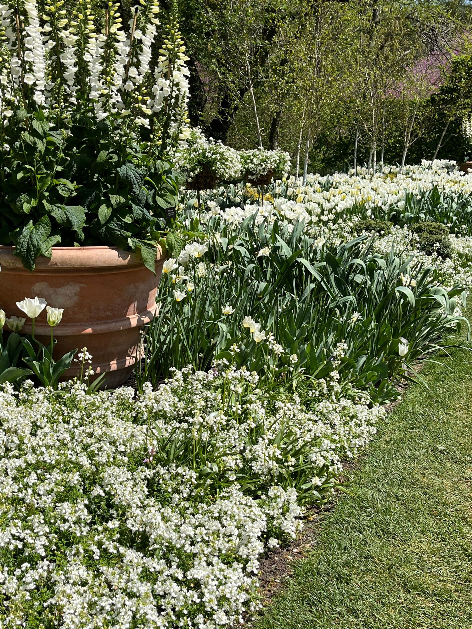 The flower garden walk at Longwood features a series of beds with a progression of colors.