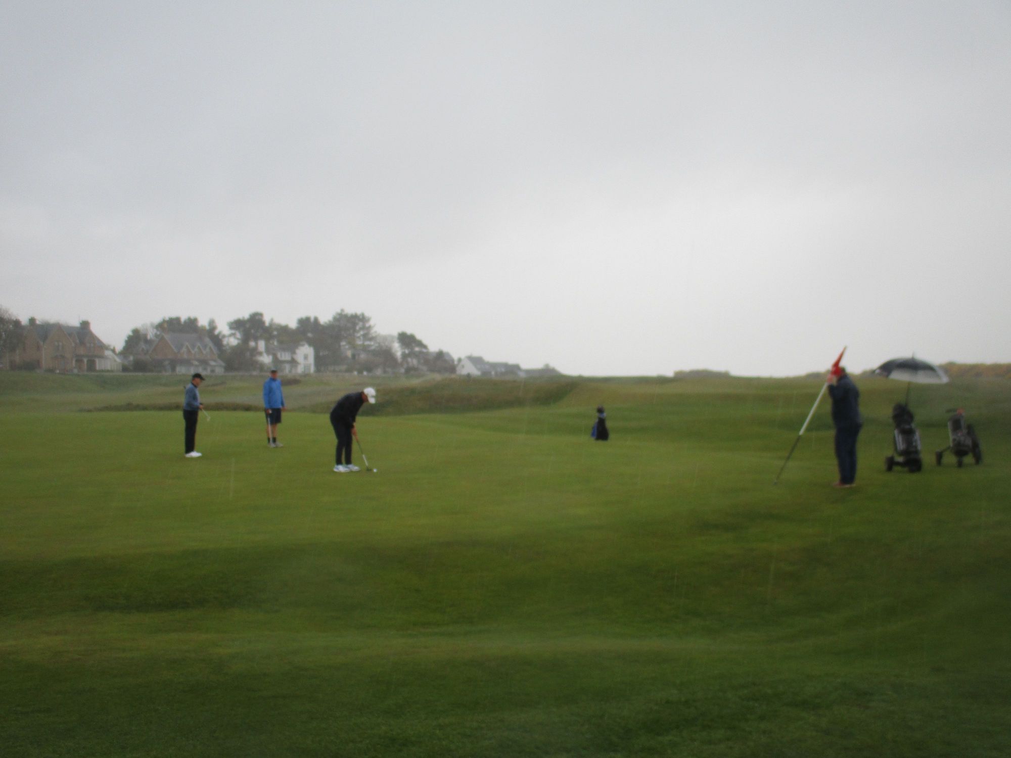 Golfers at the Royal Dornoch Golf Club, by the beach