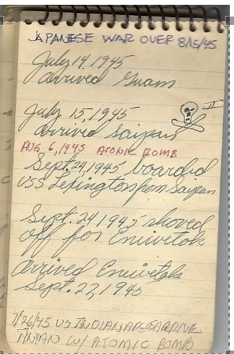 The end of the war in the Pacific Theater. He was off Saipan, waiting...
