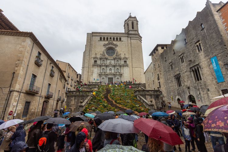 From the square looking up; the canopy of umbrellas adds a colorful touch!