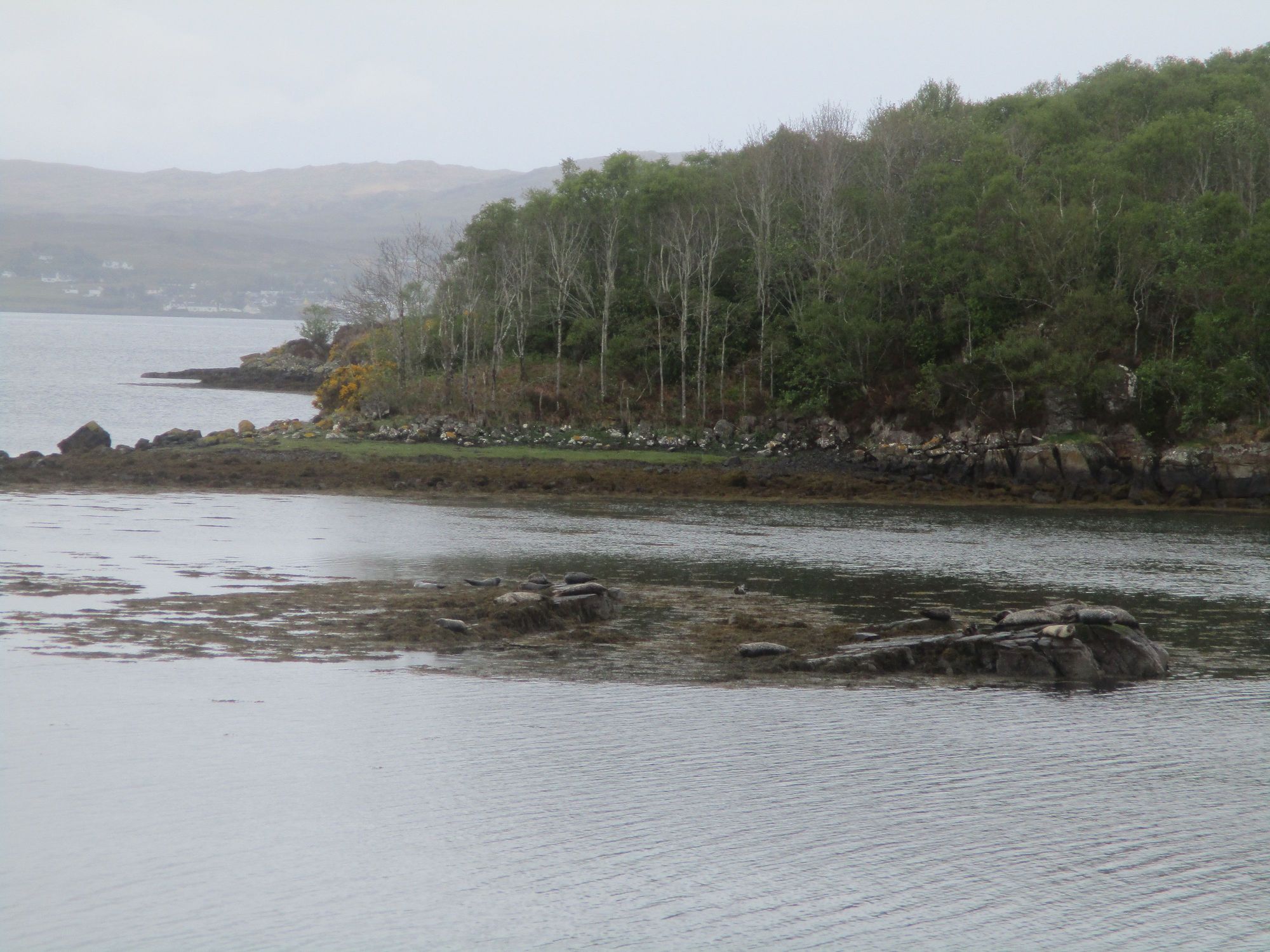 Seals basking on a rock in the bay at Badachro