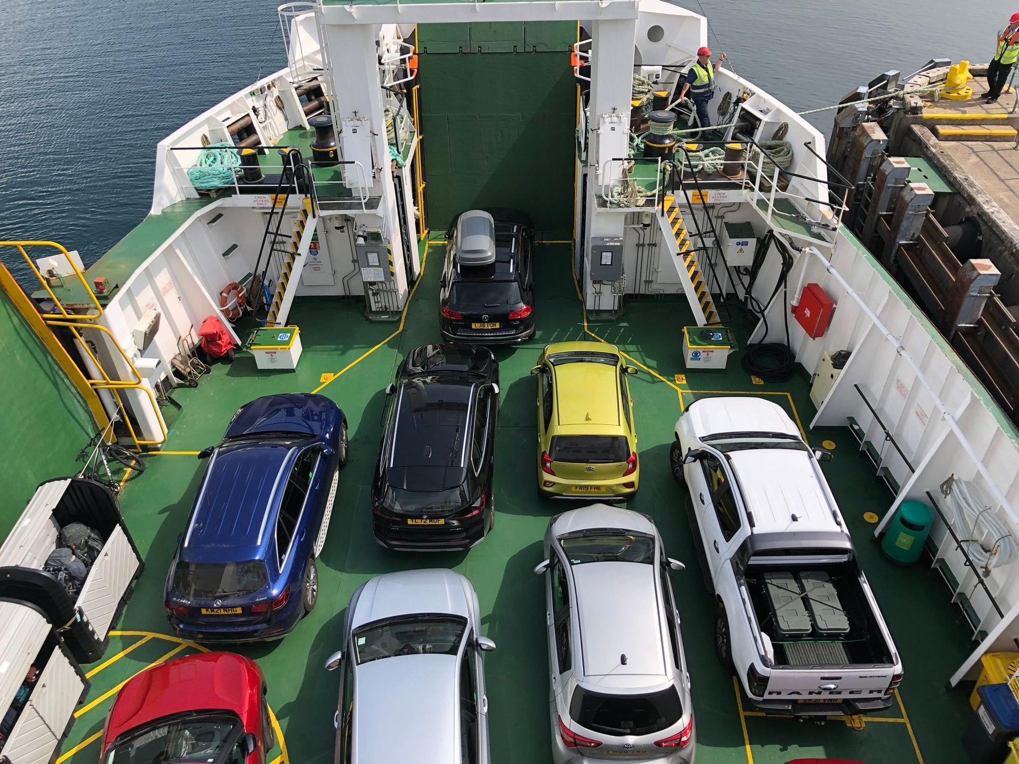Our car is the blue car on the left