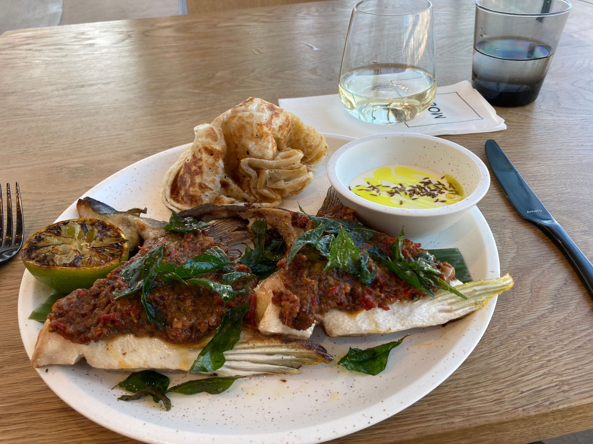 Kingfish wings & a Riesling from Orange.