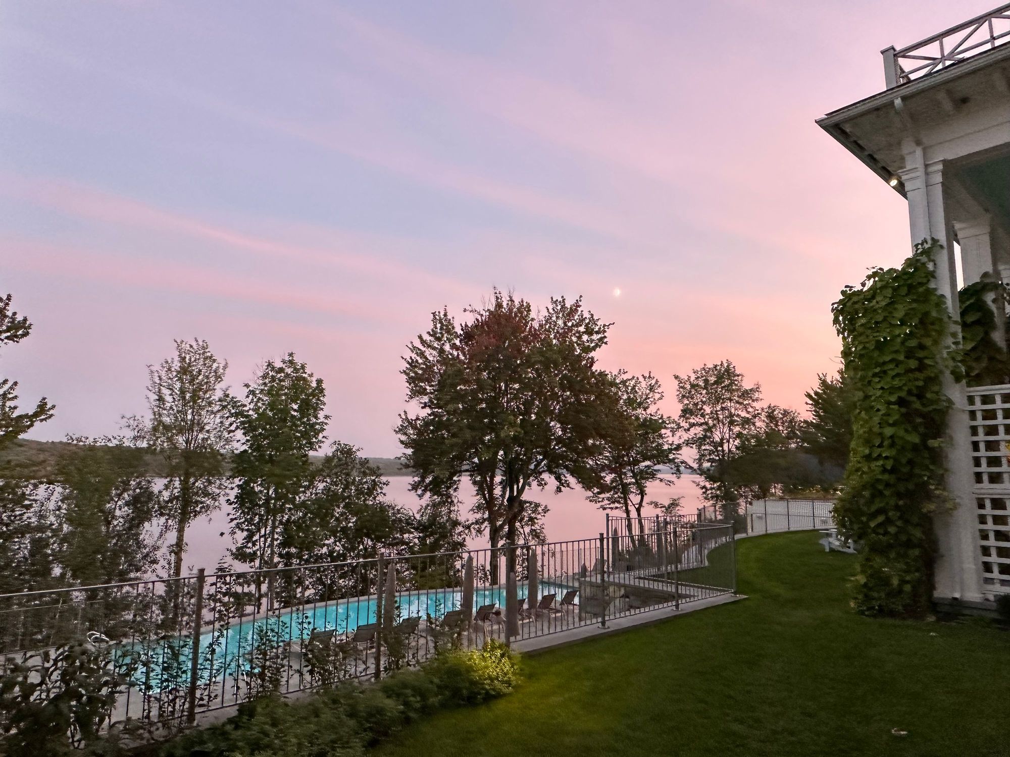 Evening view of the pool and lake.