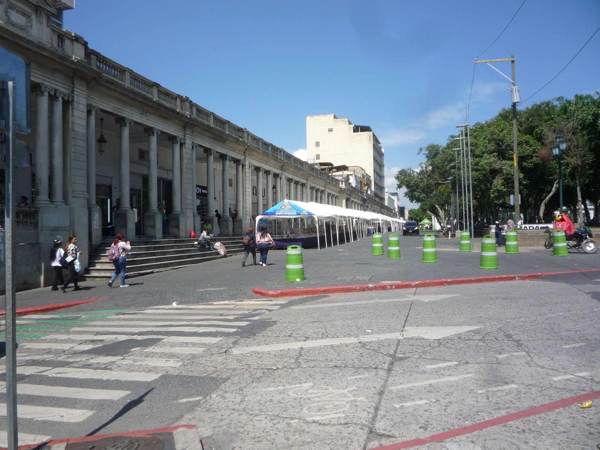 An invitingly long row of book stalls along the south side of Constitution Plaza.