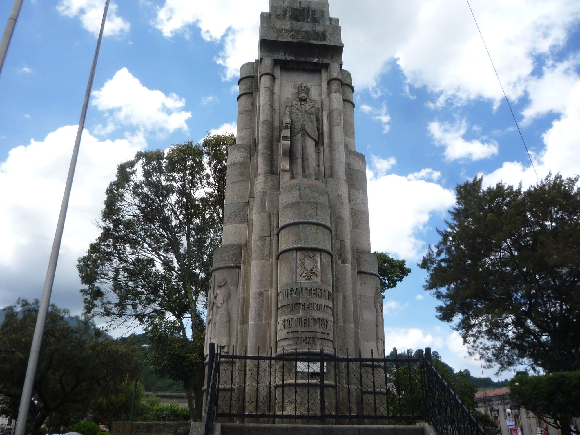 Monument to Justo Rufino Barrios (central plaza), president of Guatemala (1873-1875), credited with having led, or forced, Guatemala into the modern age of business and industry, known in Guatemala as the Age of Reform.