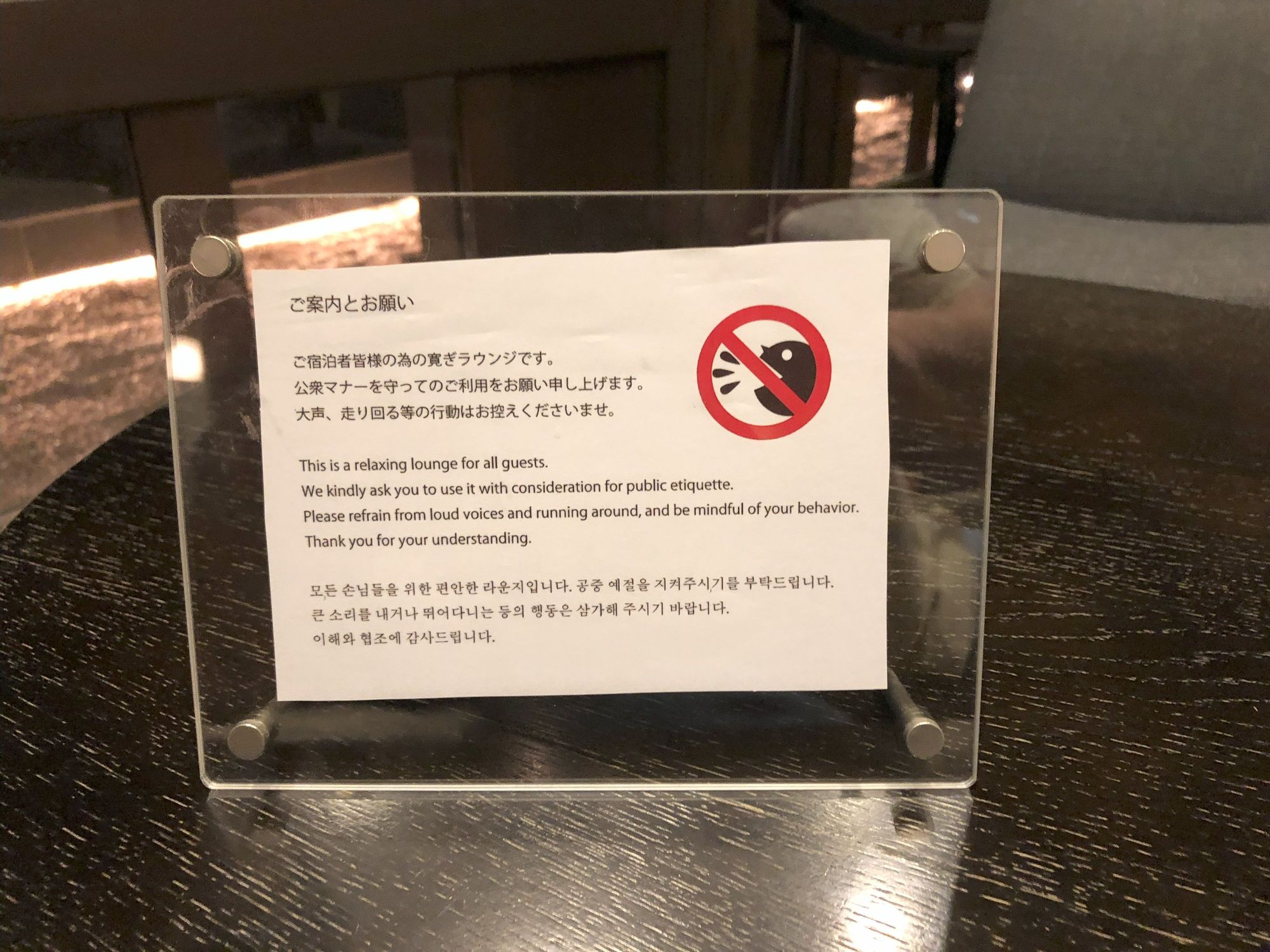 Instructions that guests should behave themselves.