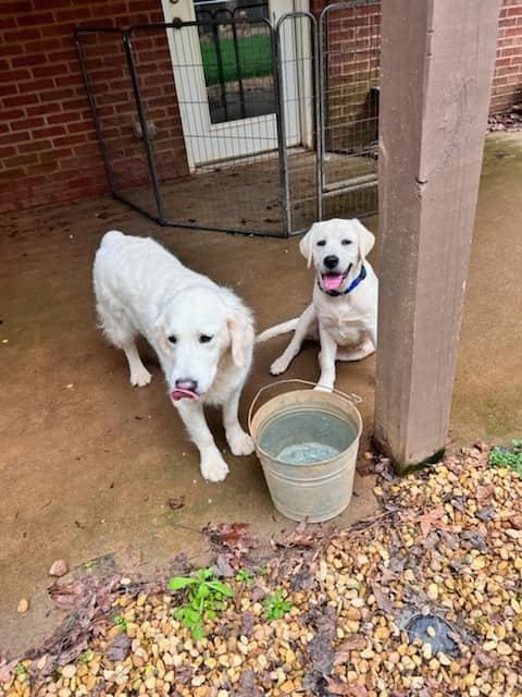 Look at Cora's smile! She LOVES hanging out with the big dogs.