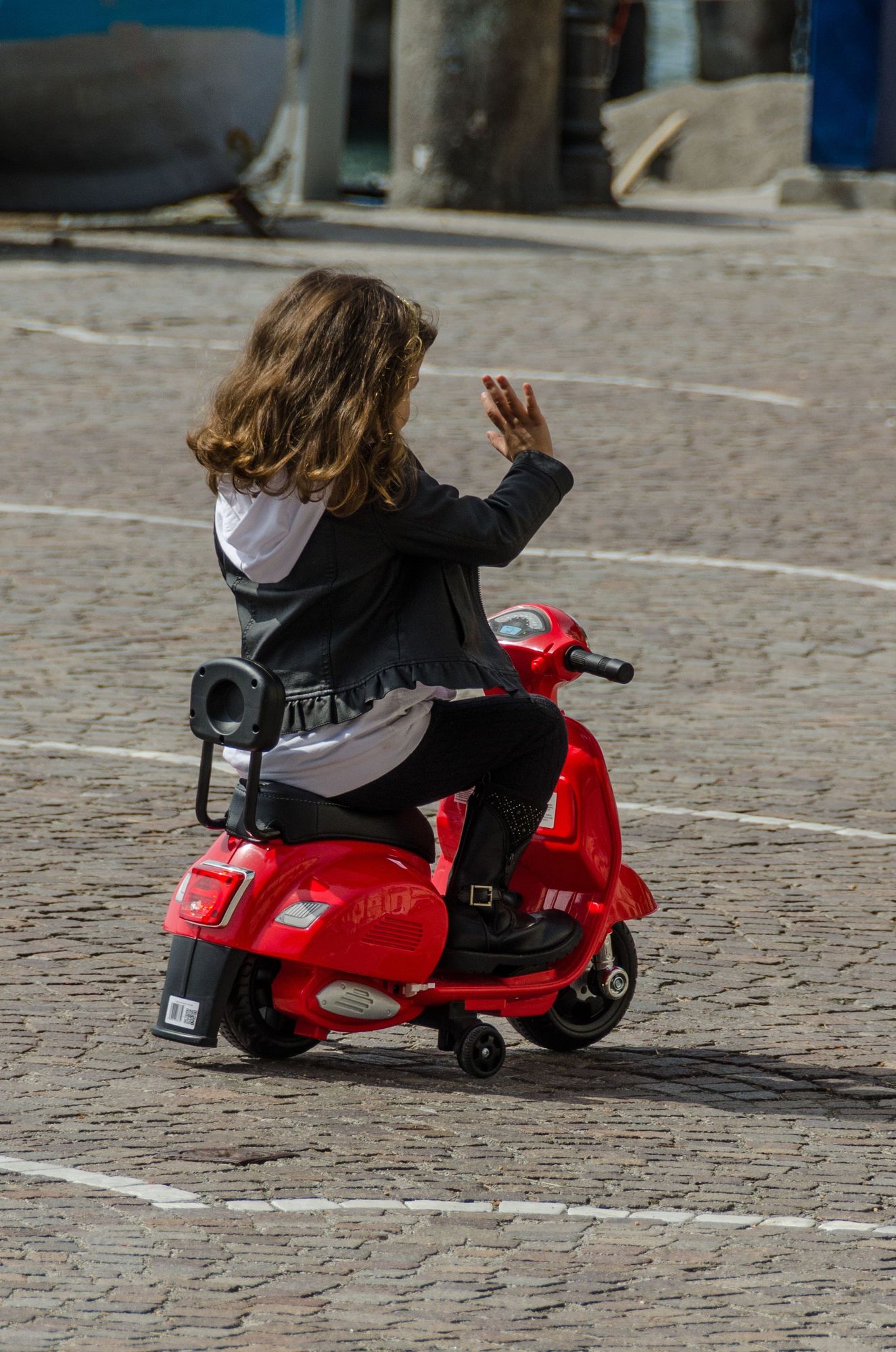 Little darling waves during her ride. *Next: the local fishing culture in Cetara.