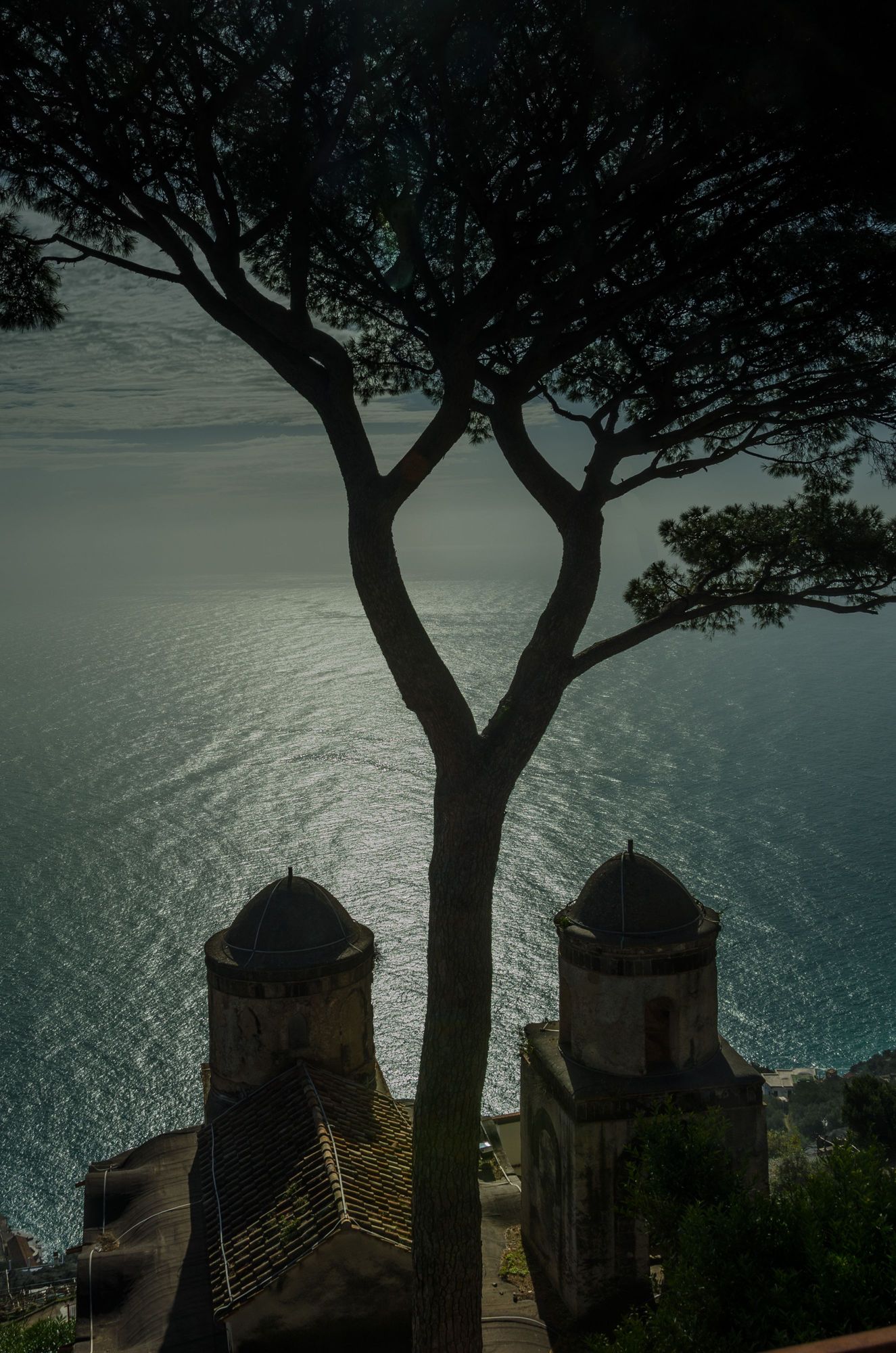 Villa Rufolo's iconic umbrella pine looming over its twin little towers.