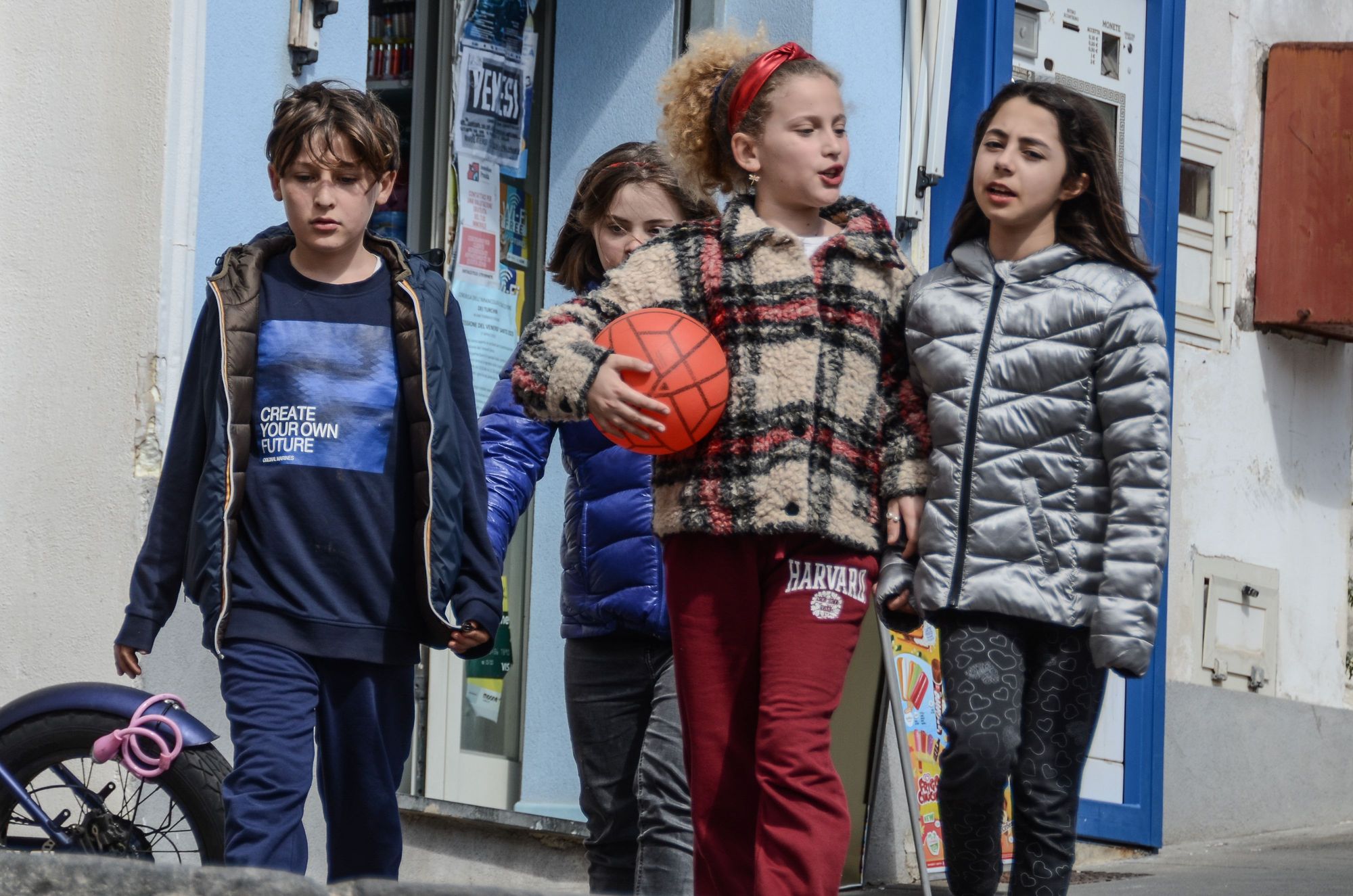 Four raggazzi headed to play calcio. Argentinian superstar Diego marradona is revered here, with tiny shrines to prove it!