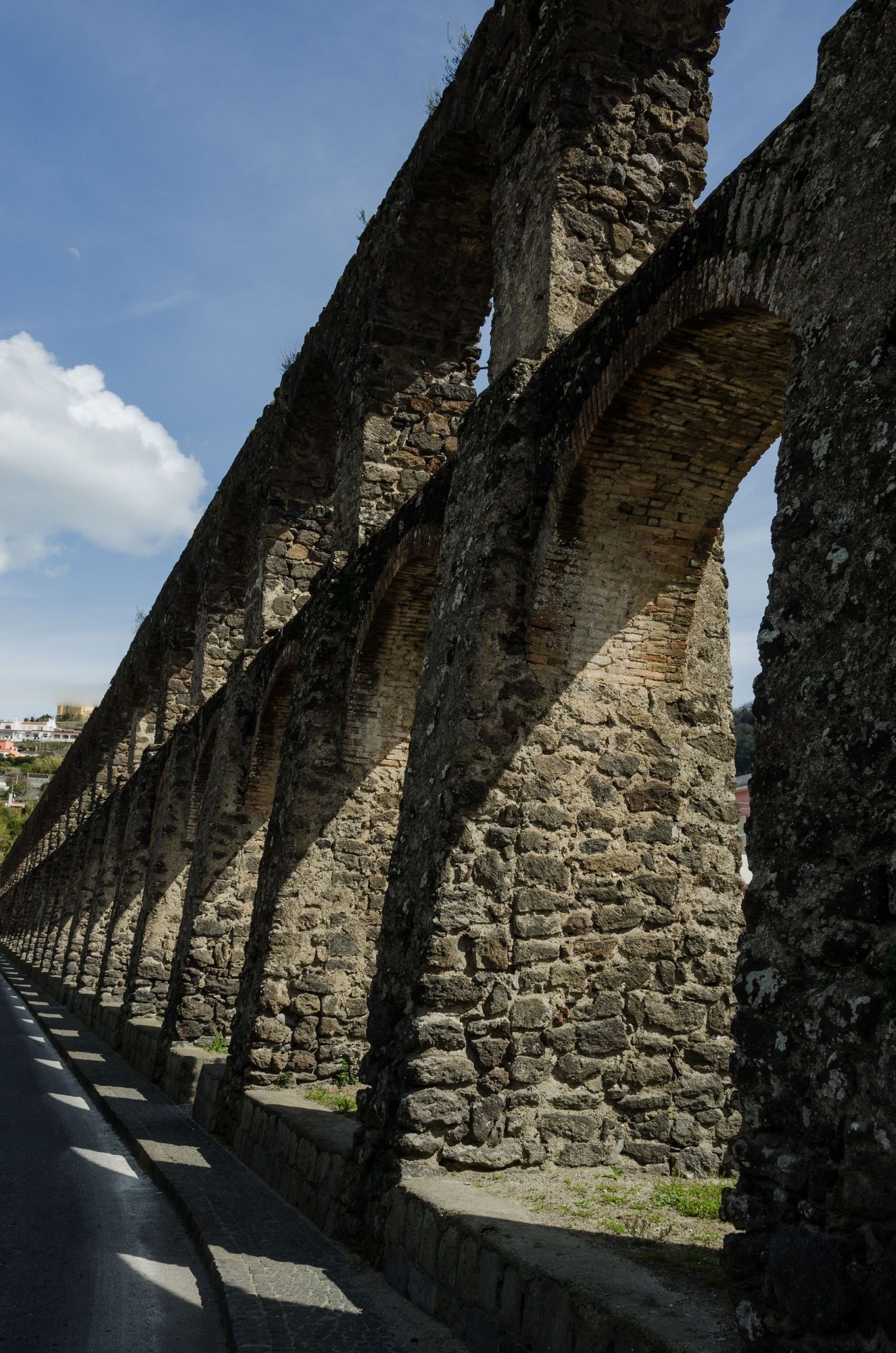 Ischia also has an water viaduct down its middle called The Piastri Pillars. We were told that it was built in the 17c and was not as we'd assumed ancient Roman. Nitrodi is the name of one established old spa that markets its special drinking waters.