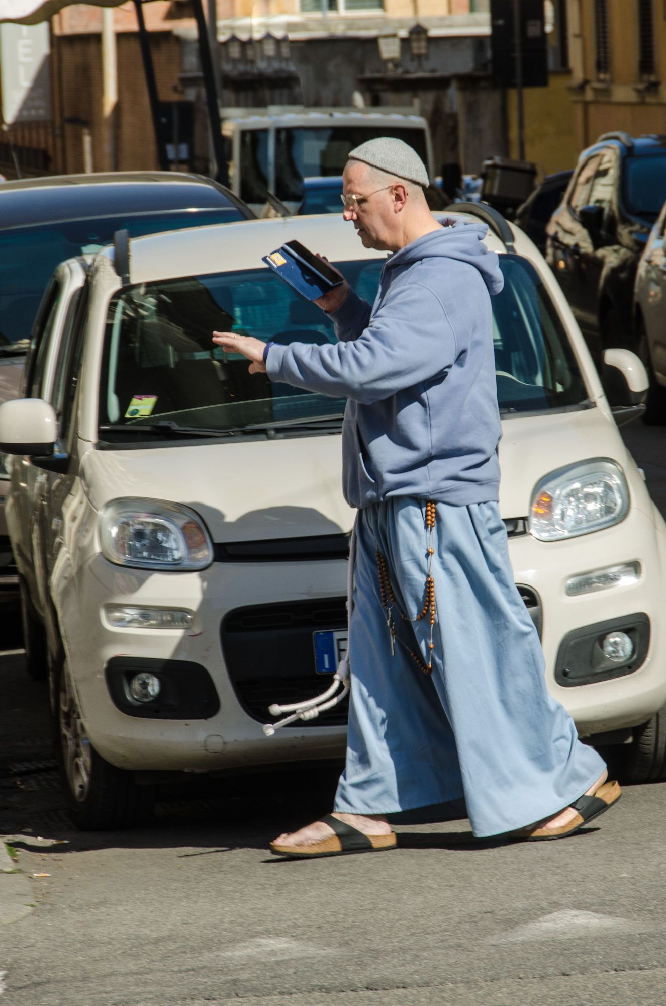 Passerby across from basilica. He is summoning Vatican police to come arrest the evil camera-toting tourist.