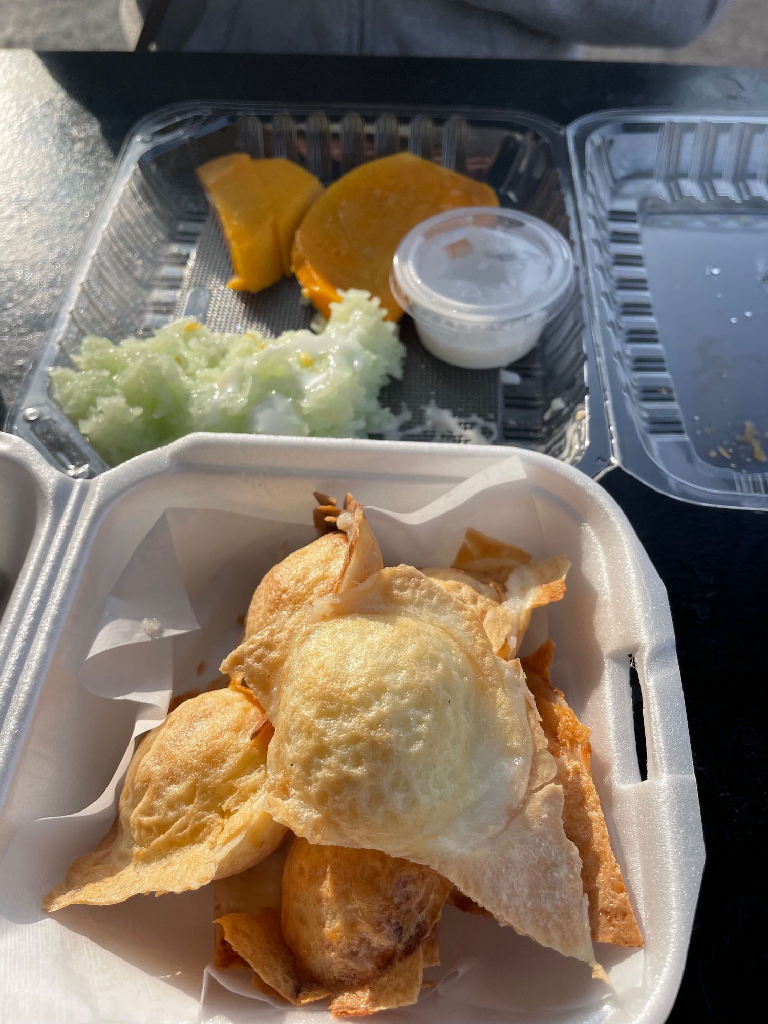 Mango sticky rice and coconut cakes for dessert
