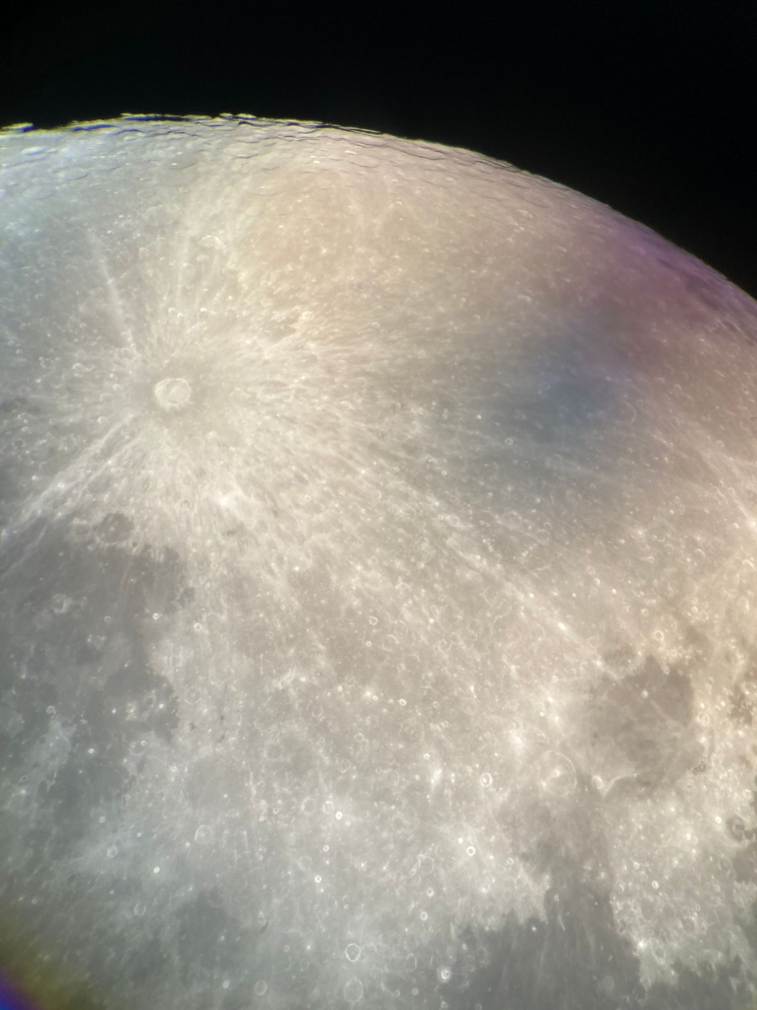 Details of moon via the Schulman telescope (you can see the craters, esp at the top)
