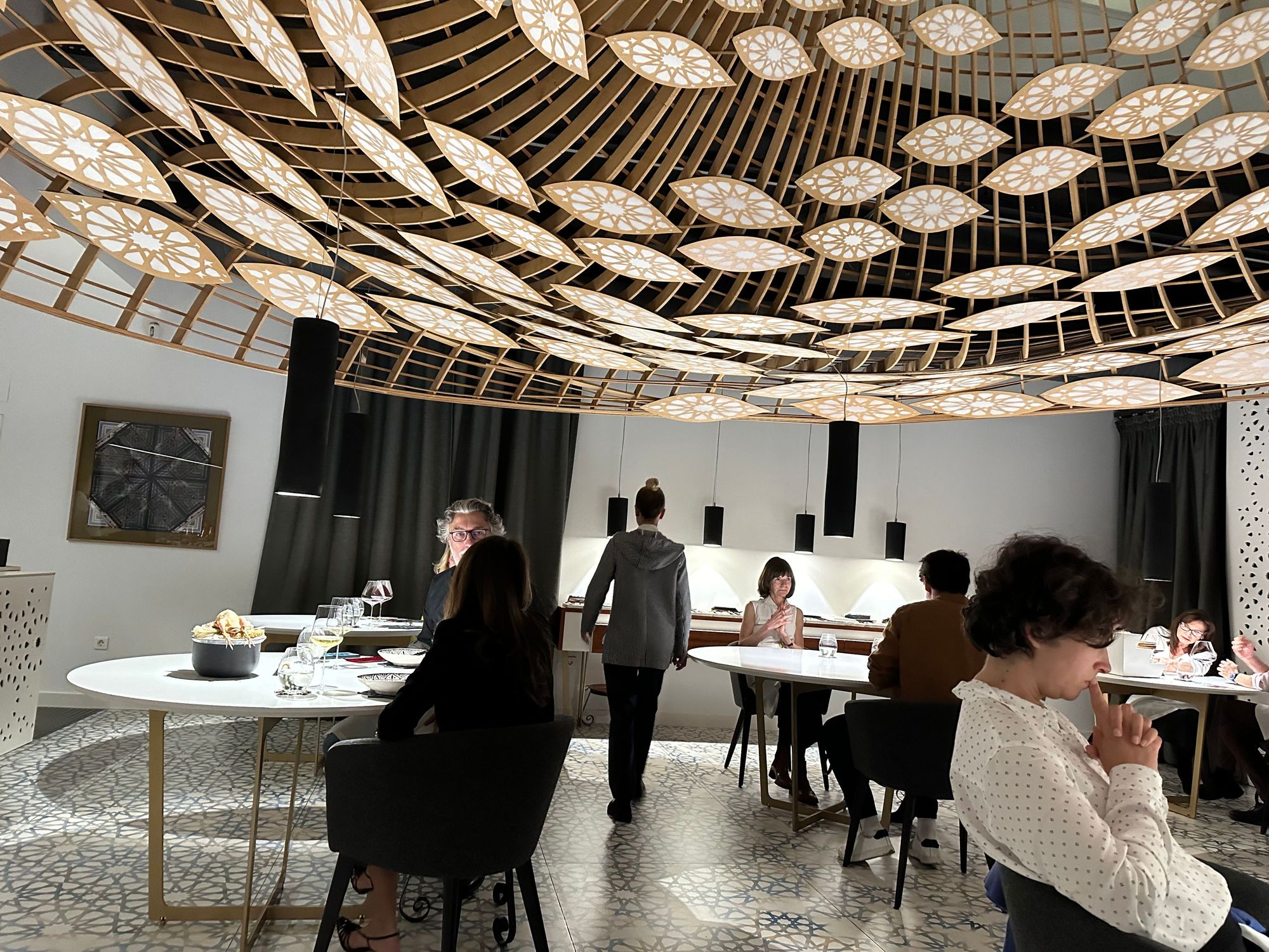 I think I counted eight tables in the soaring dining room; most diners were speaking Spanish but waiters all spoke at least some English and some were fluent....this was the view from my table. The restaurant has an open kitchen, not shown here.