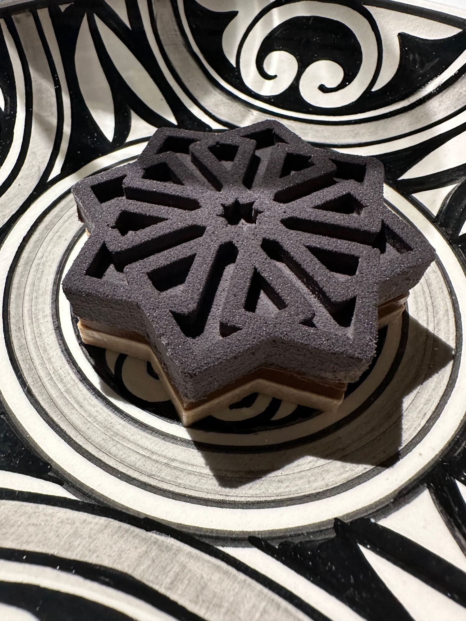 TARTA DE ALGARROBA (Carob Tarte), which was preceded by an orange sorbet