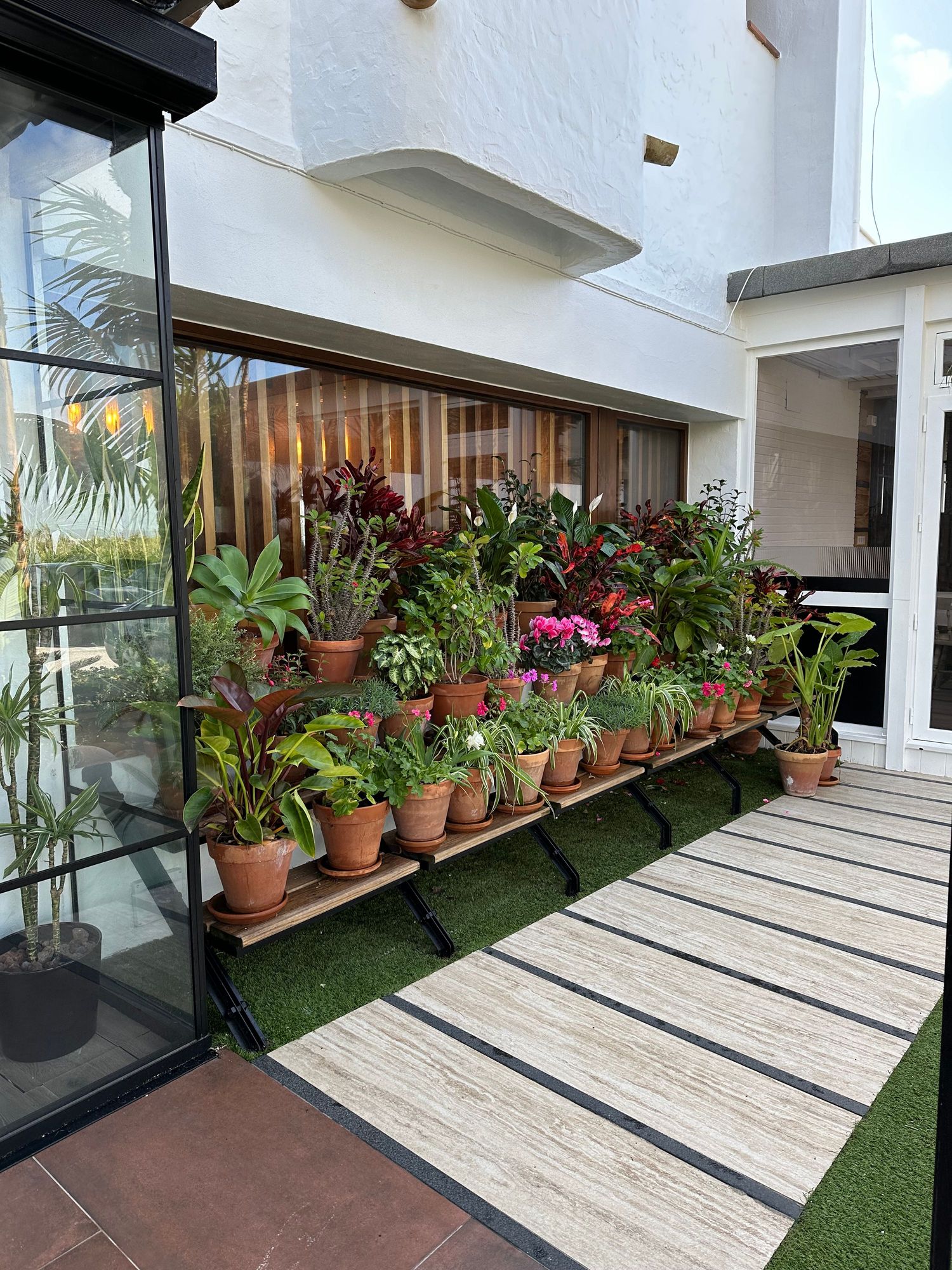 Flowering potted plants right of main entrance to ANTONIO, outside ZAHARA DE LOS ATUNES (Zahara of the tunas)