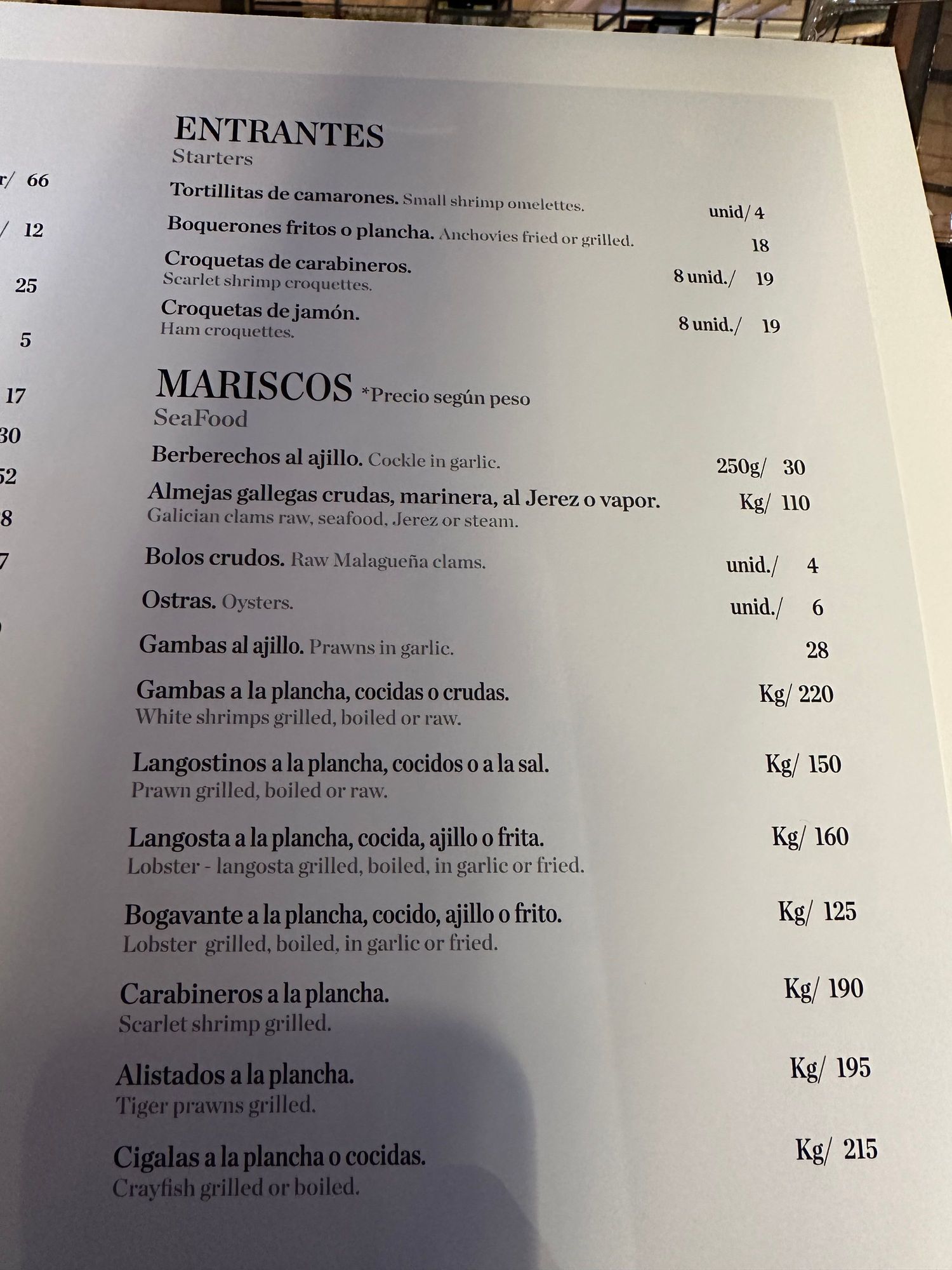 Carta: Starters and Shellfish