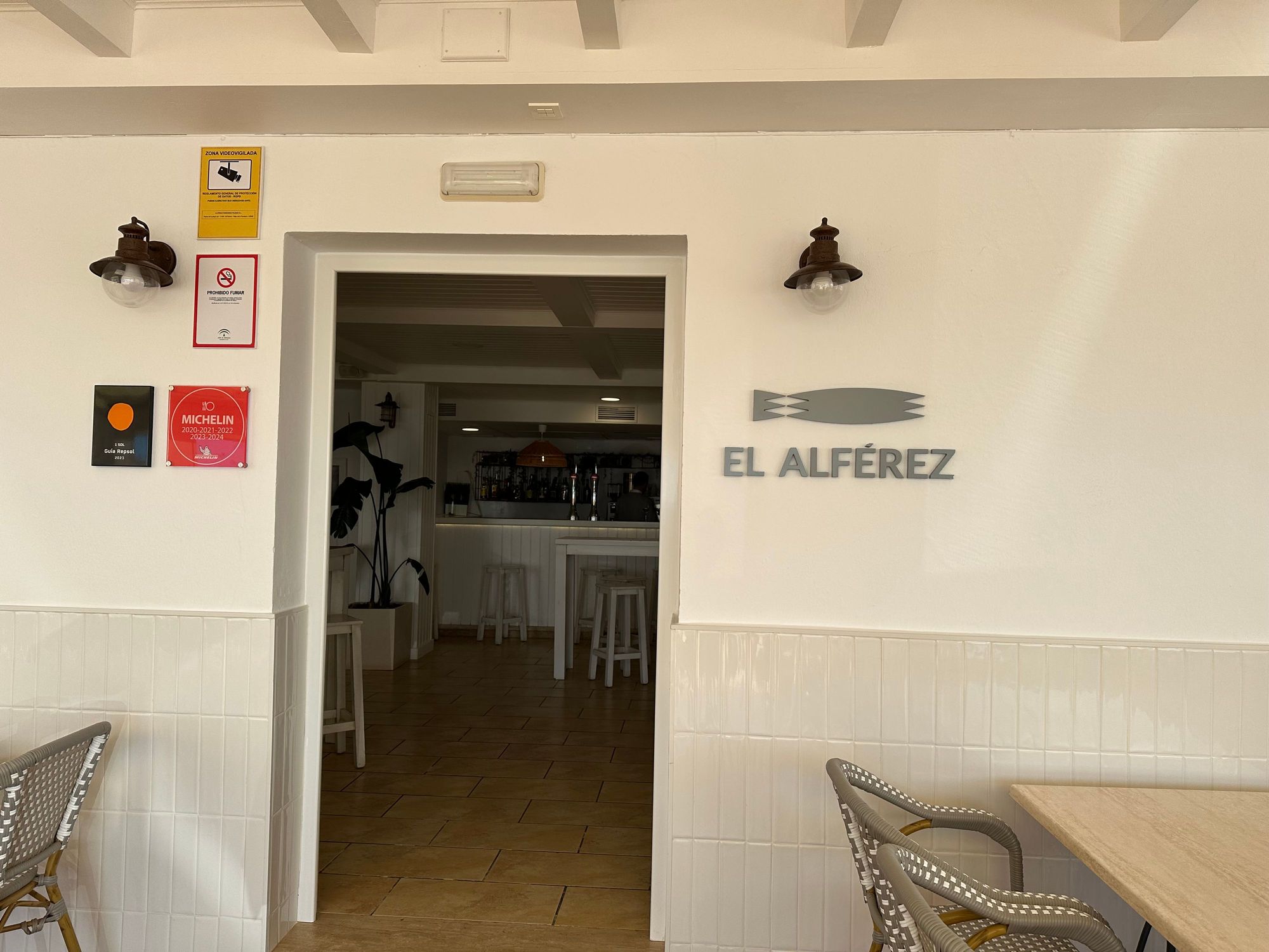 Entrance to dining room of Restaurant, EL ALFEREZ, one of El Palmar's vaunted addresses for seafood.