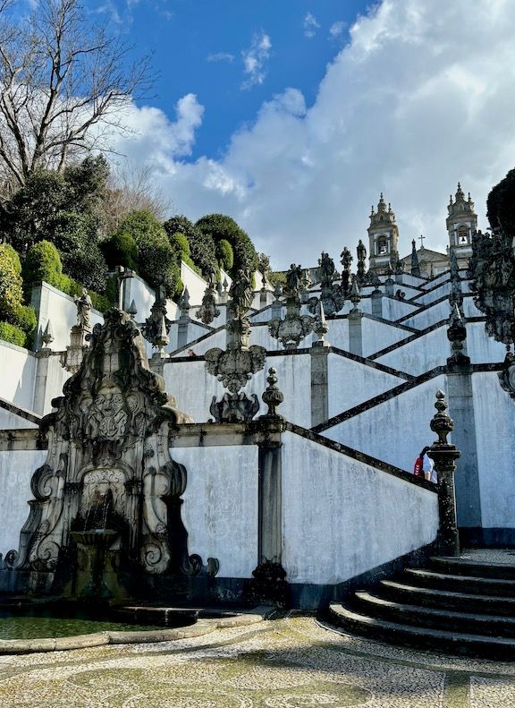 The upper staircase is steeper with some notable fountains