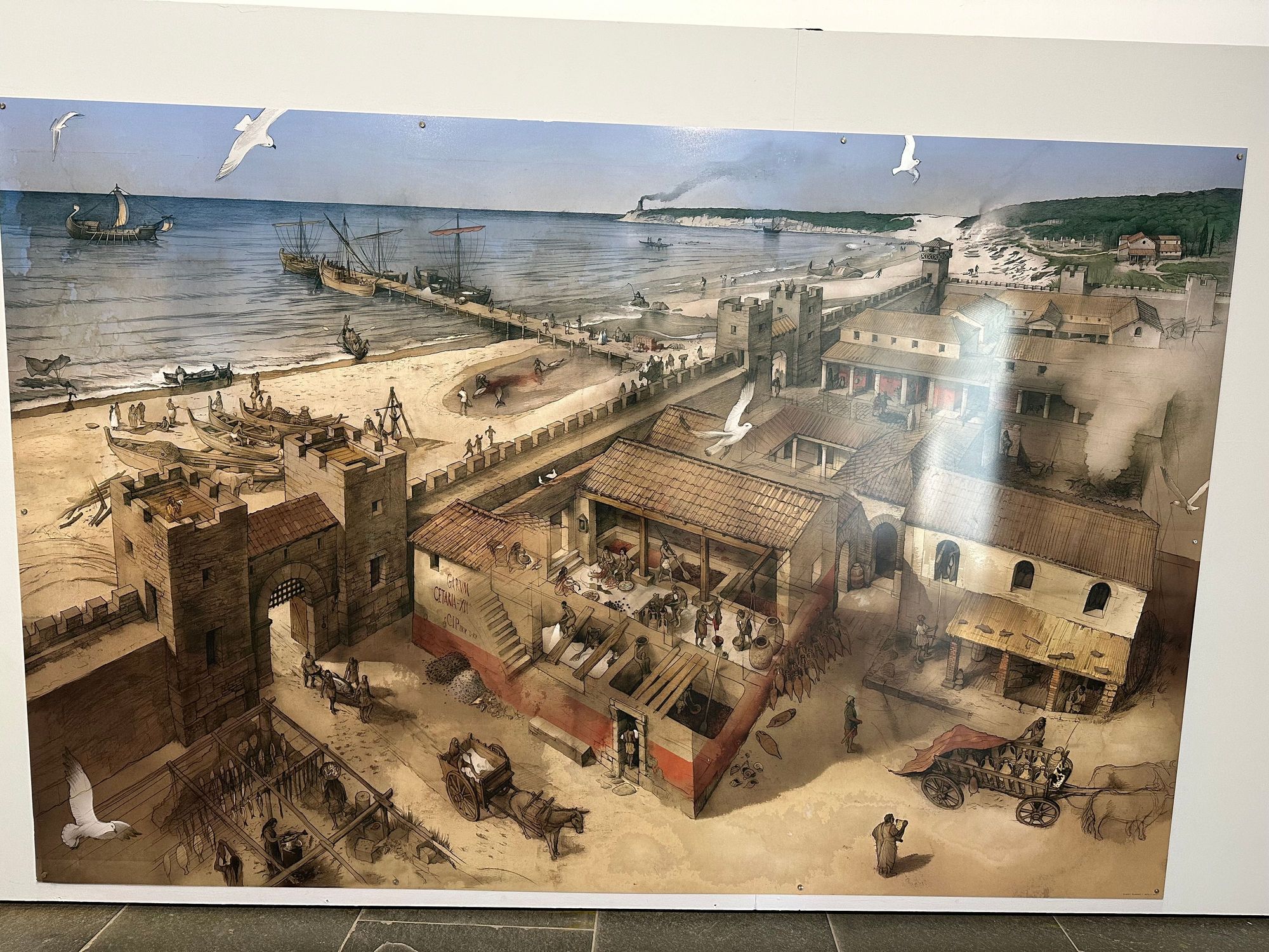 The tuna and salt enter the settlement, separately, through the gate, and proceed to the garum "factory."