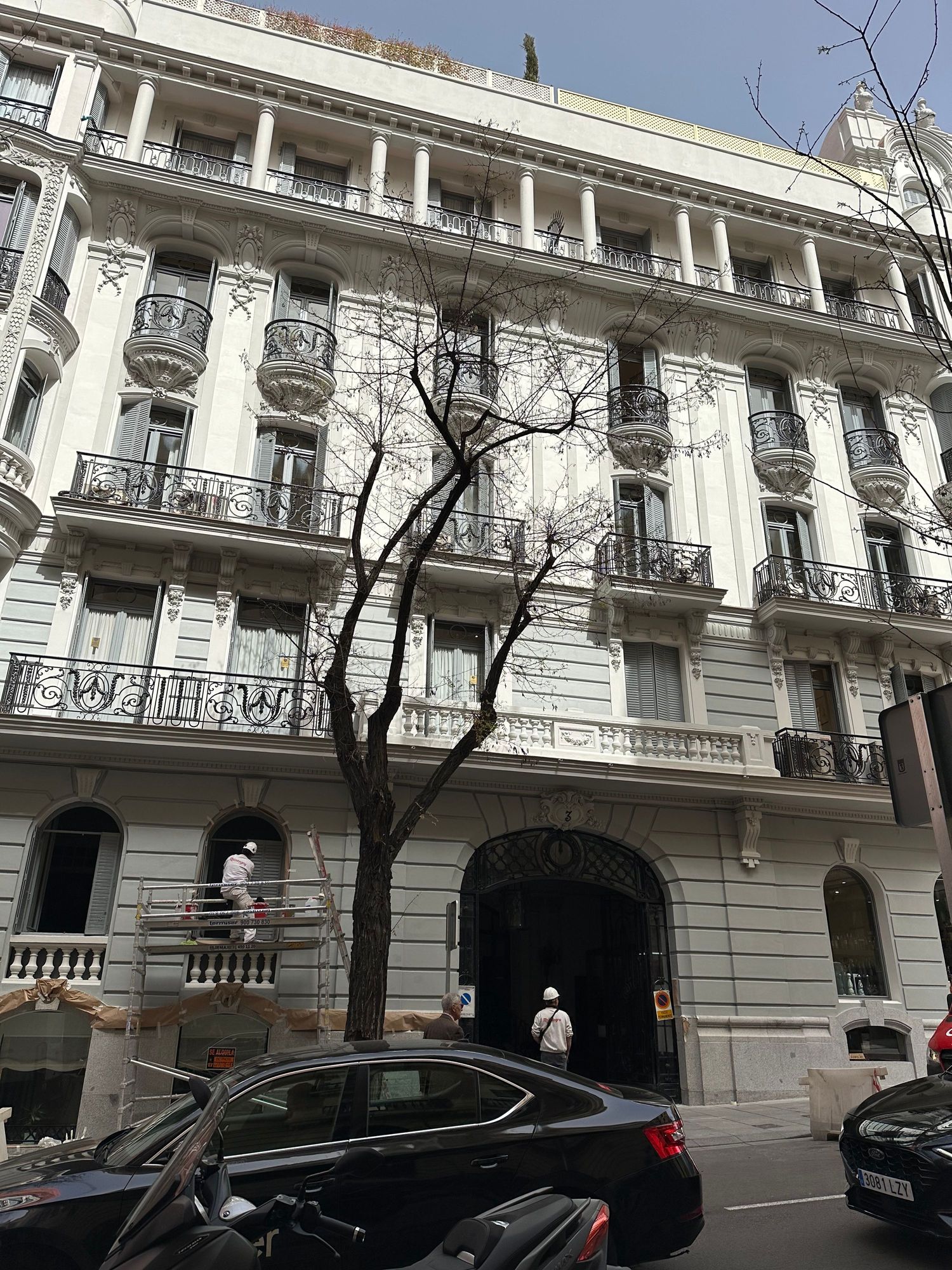 I'm almost certain that this building, under renovation, is on Calle Ayala just east of Serrano.