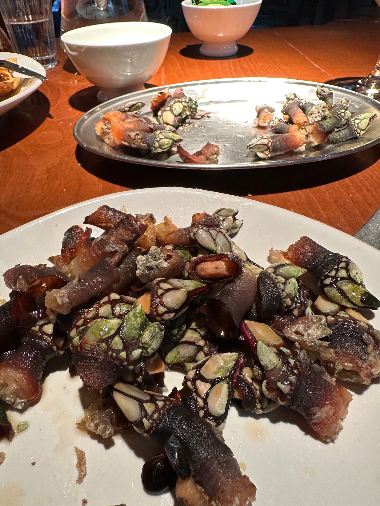 These are the much-vaunted percebes, sea barnacles, pried at tremendous peril by specialized percebeiros who clamber down the wind-lashed cliffs to gather these morsels that sell for hundreds of euros in Madrid and other urban centers. It is very much worthwhile to view videos and read about these brave souls; every village memorializes those who have lost their lives in the pursuit of a delicacy too expensive for most locals but much in demand by tourists, like ourselves.