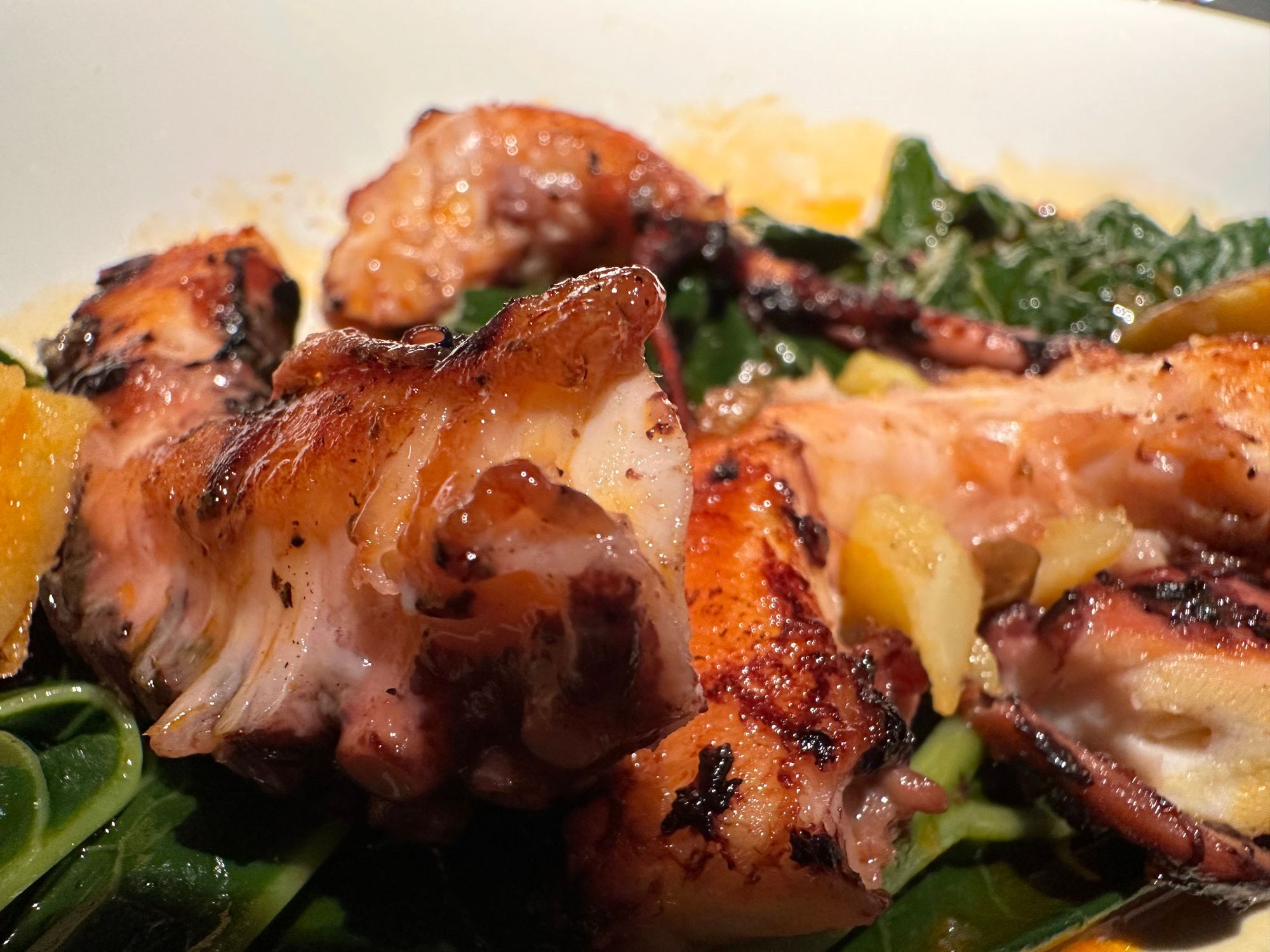 Close up of the octopus. Our dinner cost 75euro including cover, water and a glass of wine. To be repeated as often as possible!!!!