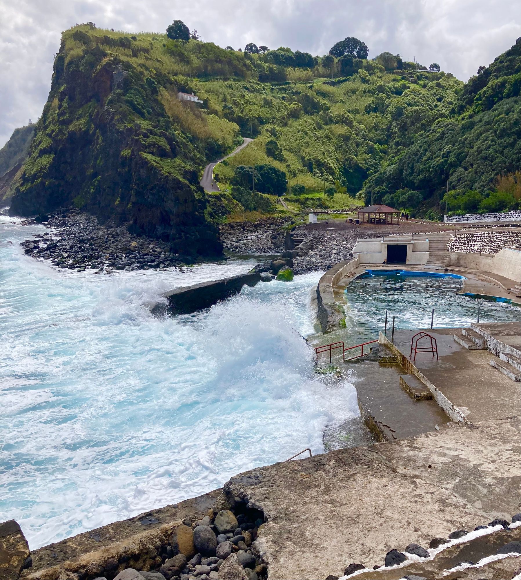 At the end of the highway a more typical winding road took us to this spot on the rugged coast to an ocean fed pool, deserted at this time of year.