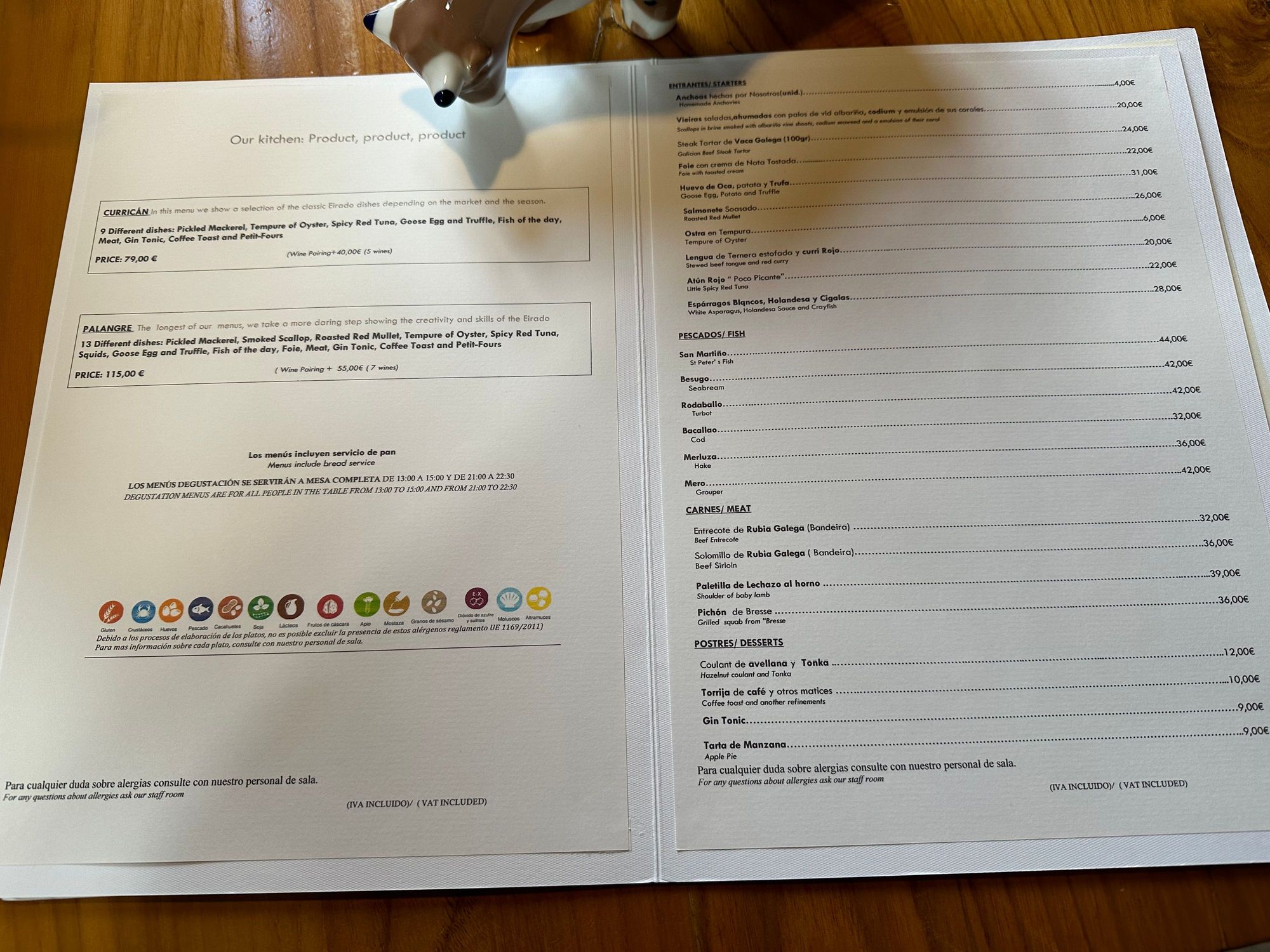Carta, O EIRADO DE LENA. (needs accent over the "N") Very reasonable prices; we found this to be true in all of the restaurants we chose during our week in the region.