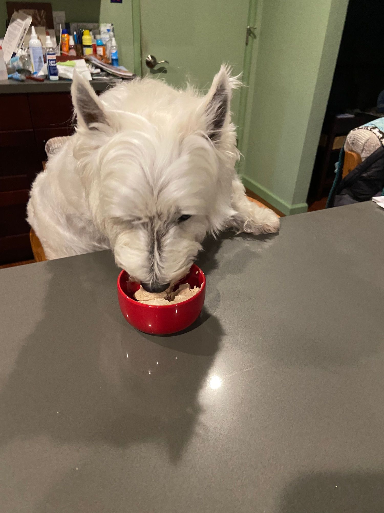 10 yrs old today! Watson shared the frosty paws with him. Bath, fluff and trim to start his new year right.