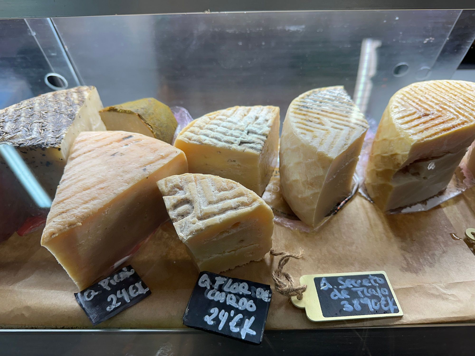 Arran of cheeses at LA TIENDA DE LOURDES. Most supermarkets sell only industrial cheeses; you have to look for the local artisanal varieties..they are superb! I brought quite a few kilos home with me!!