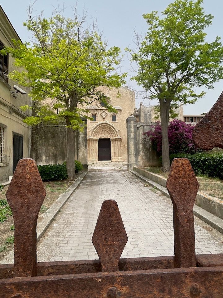 Next up: Santa Maria del Gesu, which partially survived the 1693 earthquake and is a prime example of 15th century architecture, with a notable cloister. It was unclear from our reading whether it was open or not. Of course, after climbing to the very top of town, we found that it is indeed (at least temporarily) closed.