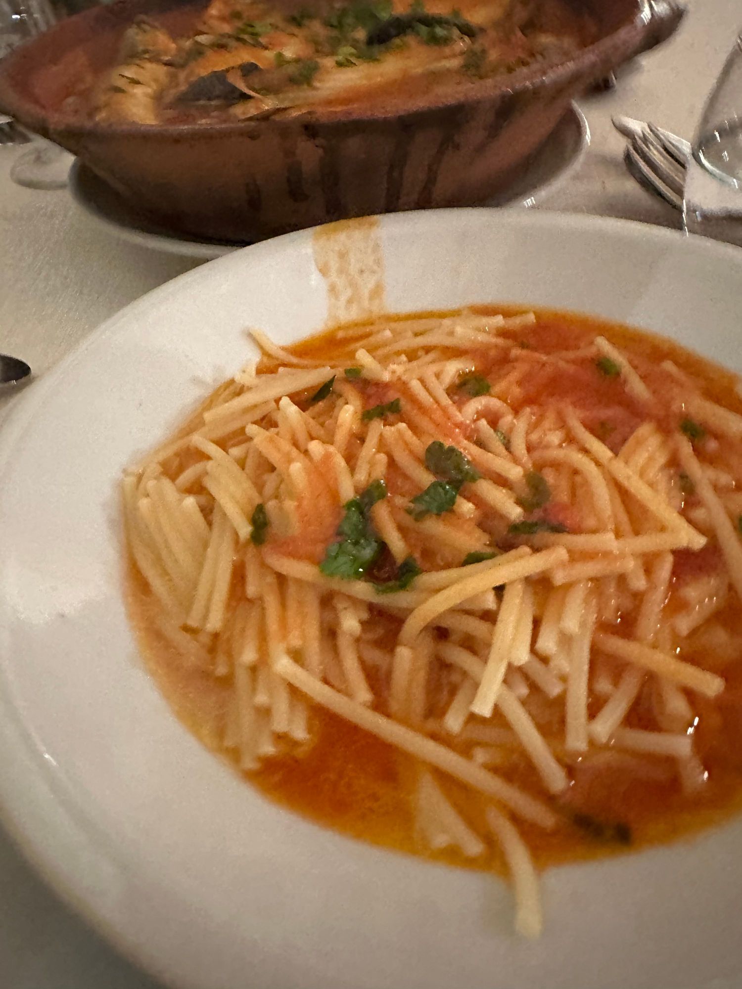 At the end of the brodetto, one eats the broken spaghetti with the tomato based sauce..divine! (This photo should be after the following one)