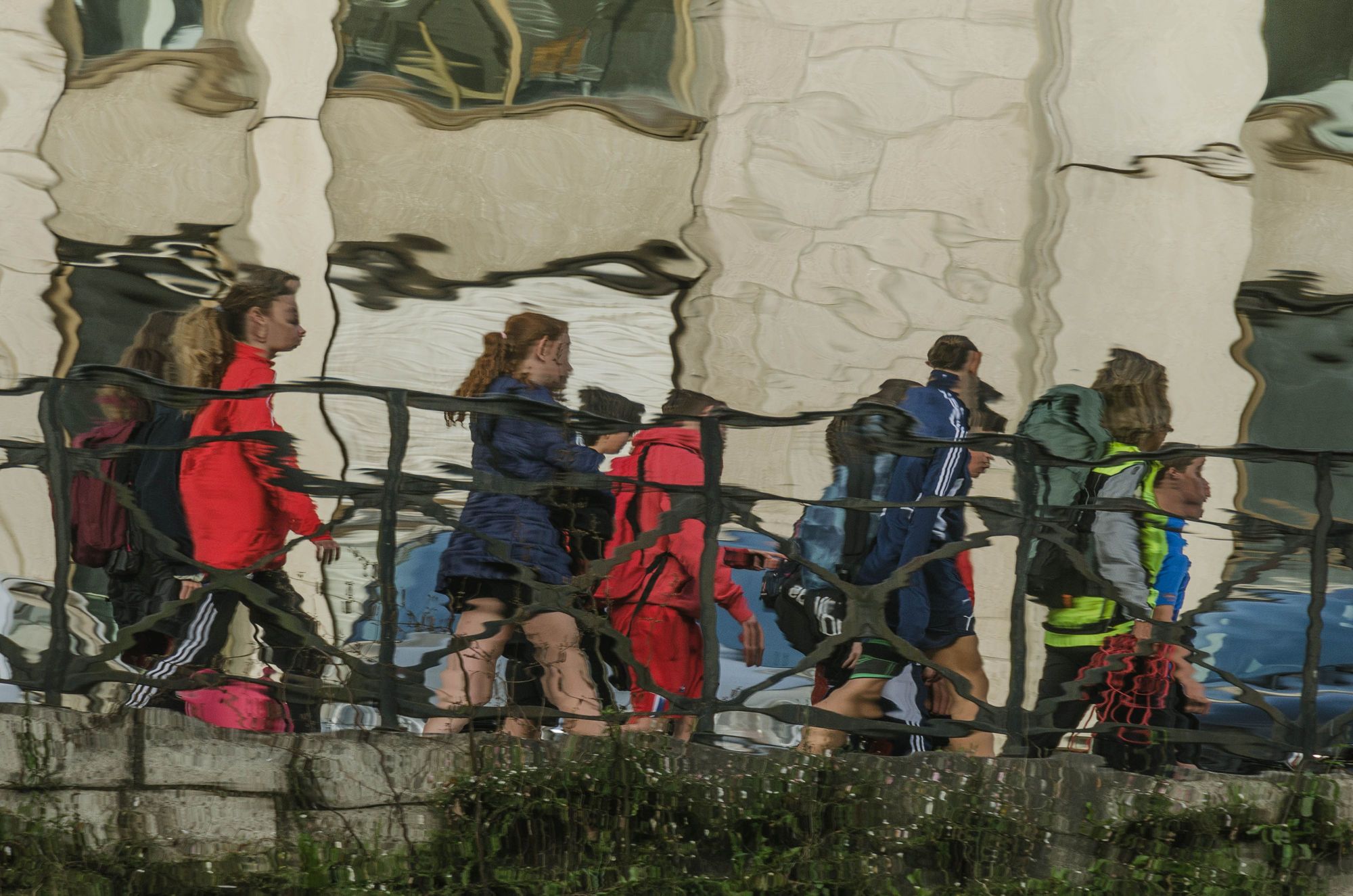 Adolescent students en route to some sporting event on the southern periphery of Quimper. Their line was extremely looooooooooooooooooooooooong.